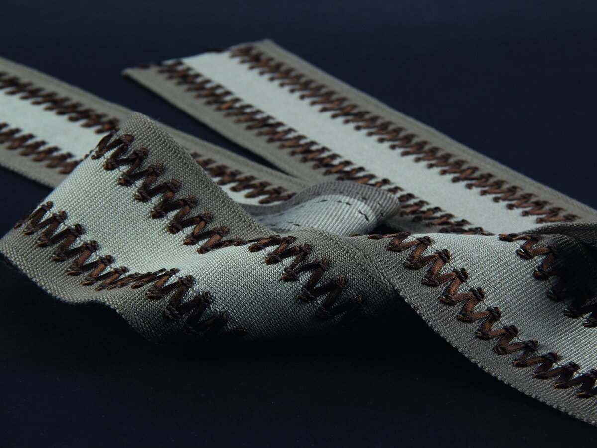 This interlaced stitching is reminiscent of fashionable corsets. It evokes modernity for various applications. The result of the interlacing on a grosgrain ground allows for use in all types of interiors.