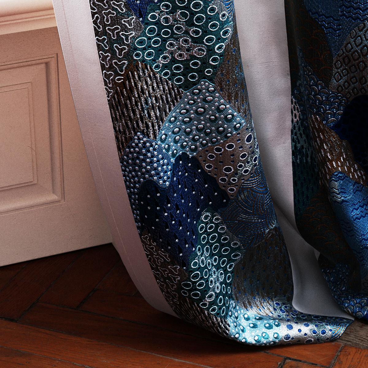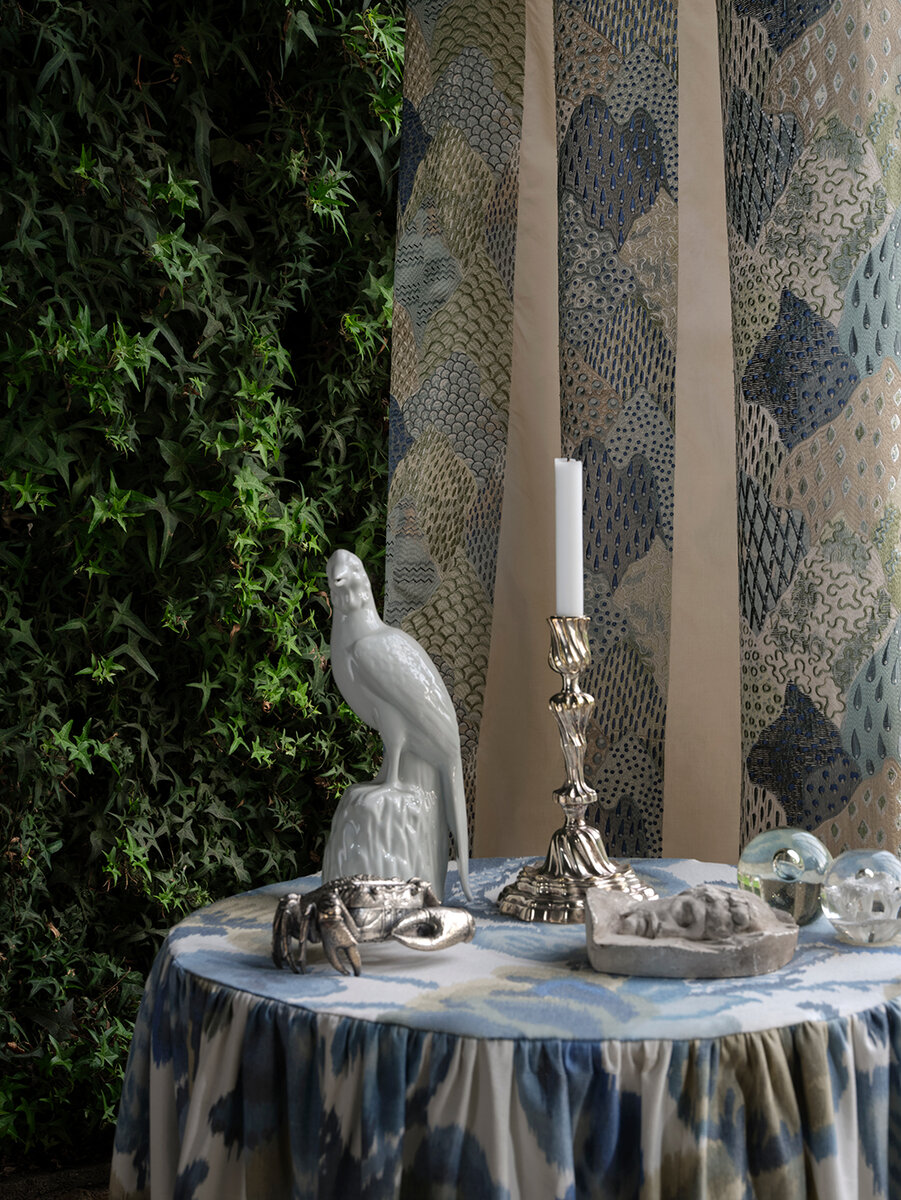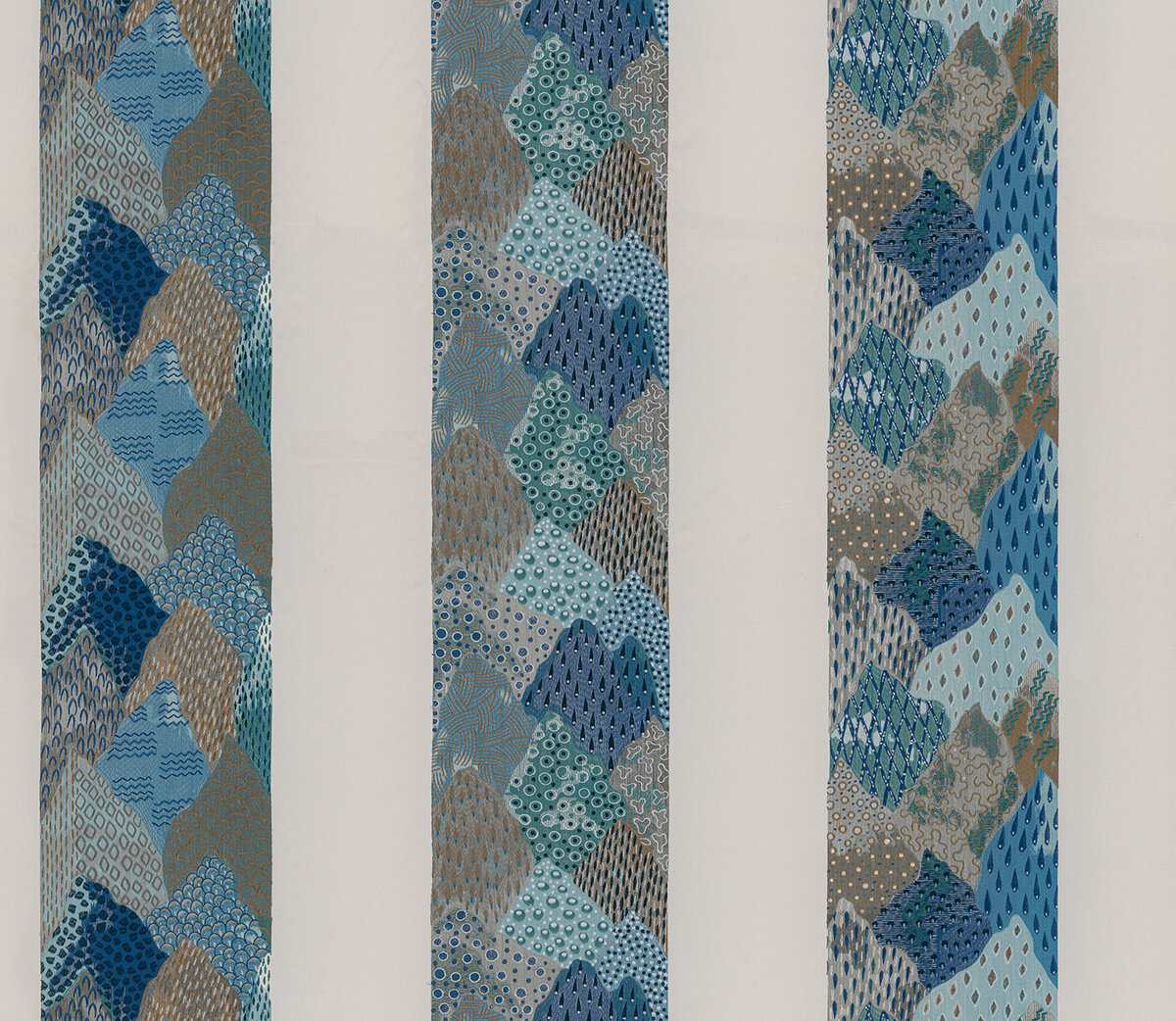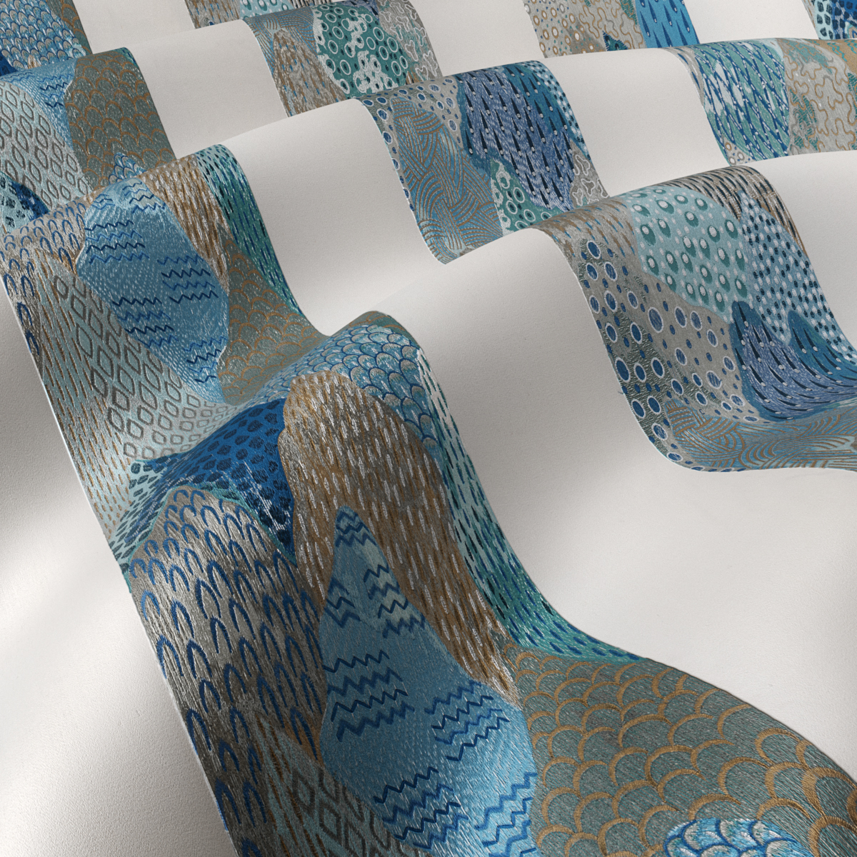 A modern take on classic depictions of Asian landscapes as an impressive block stripe design. Opulent and abstract at the same time. The imaginatively designed motifs within the blocks were embroidered with the finest viscose yarns, in an unusually high thread density on the elegant cotton sateen. ROLLING HILLS is available in three colorways.
