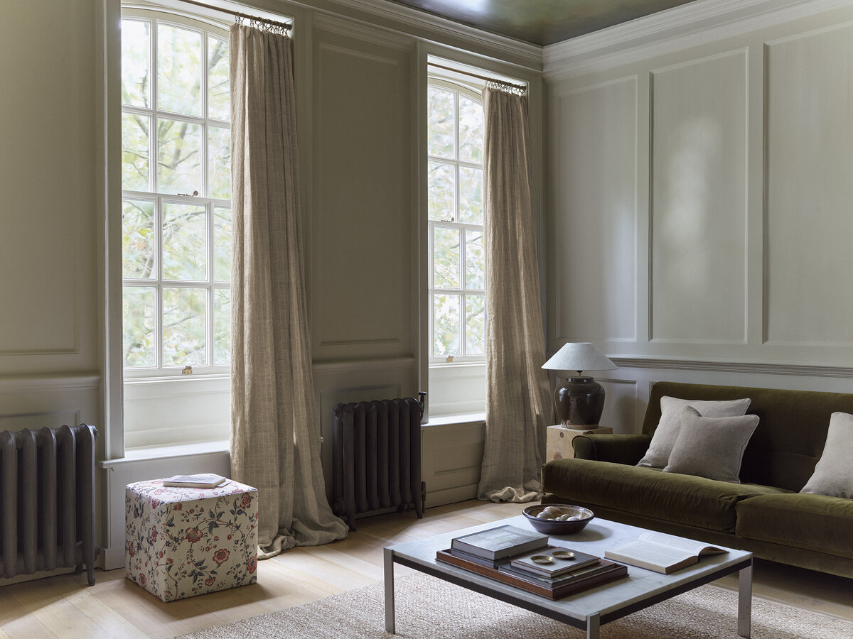 ‘Rousham Check’ is a delicate linen silk, offering a sophisticated yet relaxed and minimalistic decorative fabric. Woven from the highest quality European linen and encompassing multiple weave structures, the fabric plays with the interaction of yarns to create a detailed surface. Referencing British heritage menswear fabrics, ‘Rousham Check’ has lustrous handle and subtle check that dances across the fabric.