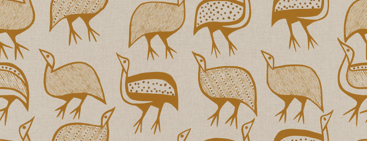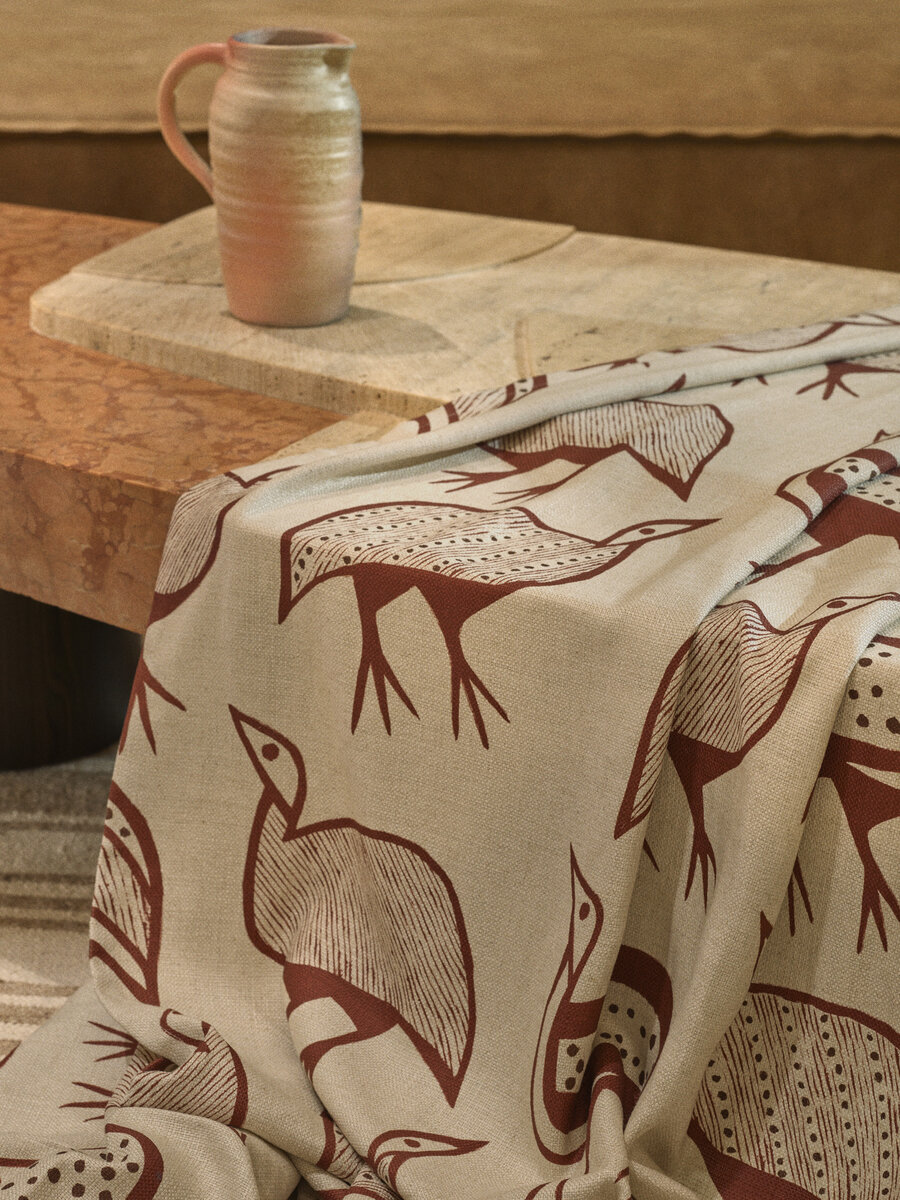 ROUSSETTE is a digital print crafted in England by a printer celebrating its 120th anniversary this year. The design, hand-painted with intentional naivety, pays homage to Picasso's early bird ceramics created in 1947 at the Madoura workshops. Perfect for draping or upholstering, this fabric invites limitless creativity and expression.