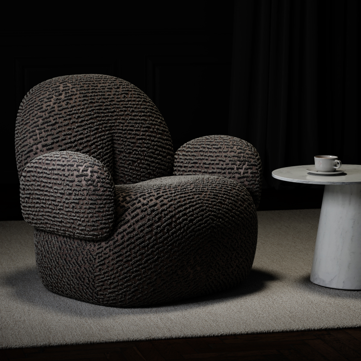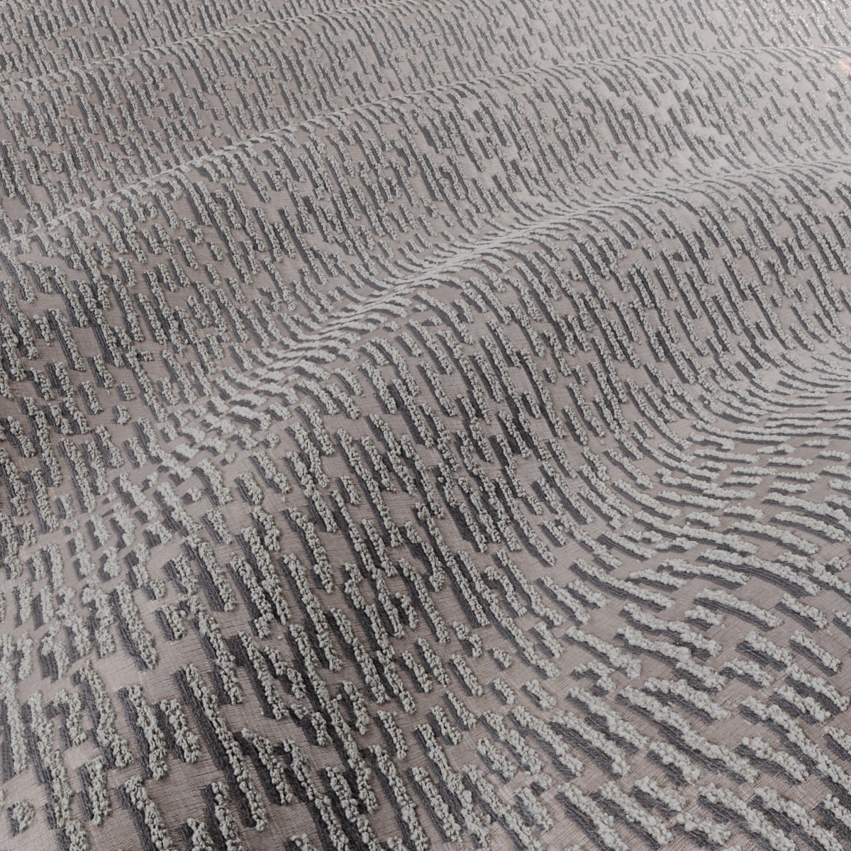 The special charm of this unusual upholstery fabric lies in the interplay of contrasts, The three-dimensional allover design was woven with voluminous bouclé yarn on an elegantly shimmering satin warp. Color-contrasting shadows in linen fabric create another layer and intensify the charming relief effect of the expressive jacquard. The eloquent character of the design makes RYTHM perfect as an eye-catching statement, ideal for smaller upholstered surfaces such as chairs or stools. But it really comes into its own, unfolding its full effect, on larger, soft upholstered furniture.