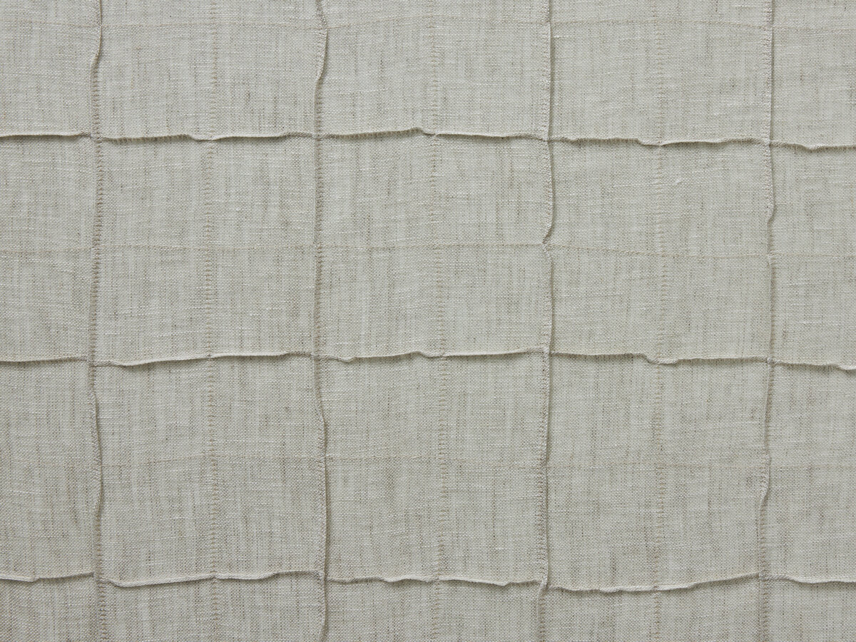 SAINT KITTS is a relaxed, all-natural transparent drapery with an airy quality inspired by its namesake island in the West Indies. Hand-guided stitching forms the pintuck squares that are applied to the linen ground by skilled craftsmen in India. Available in a serene range of Ivory, Cream, Natural and Aqua, this delicate sheer is extremely soft to the touch.