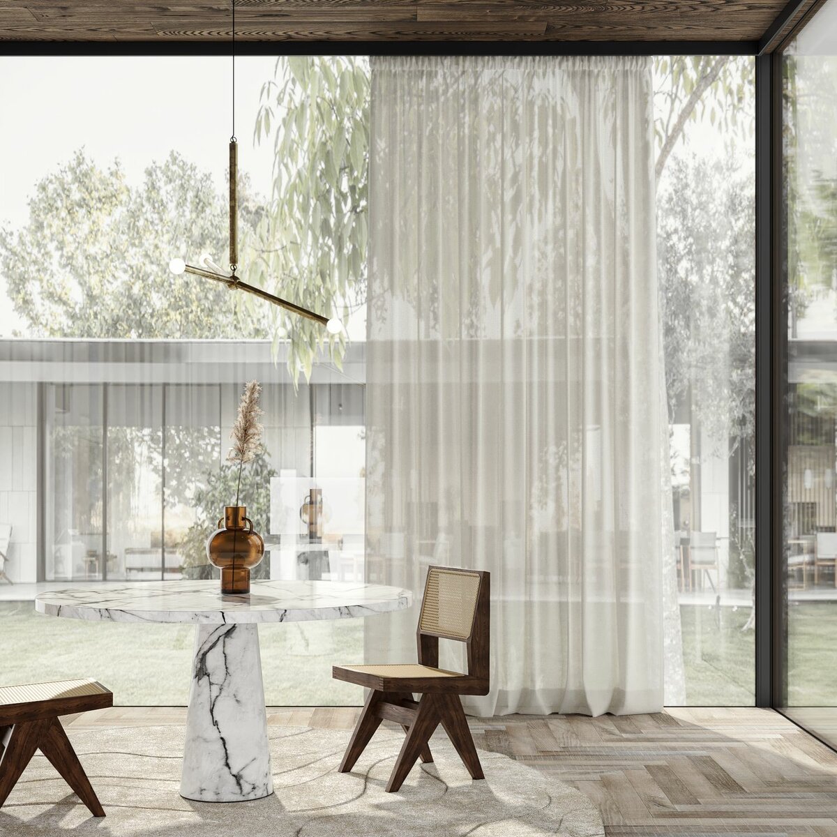 Semifreddo, with its soft pastel colors and unique net structure, adds a relaxed vibe to any room. A blend of 97% polyester and 3% linen, this fabric offers delightful transparency and a casual, light drape.