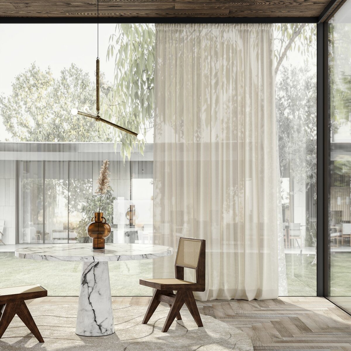 Semifreddo, with its soft pastel colors and unique net structure, adds a relaxed vibe to any room. A blend of 97% polyester and 3% linen, this fabric offers delightful transparency and a casual, light drape.