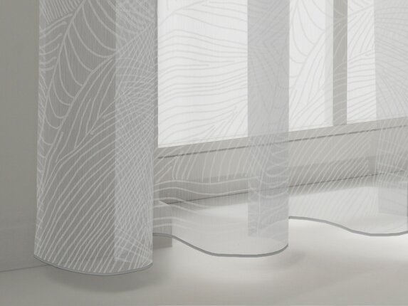 SHANTI has it – your special something! The restrained devoré offers a lot: It shines with naturalness and shows itself relaxed with its delicate spun yarn, intensified by the print that seems to create soft natural stripes just like strié. Its design is characterised by an artistic texture that looks like a large leafy forest - gently flowing, easy to clean and great to decorate.