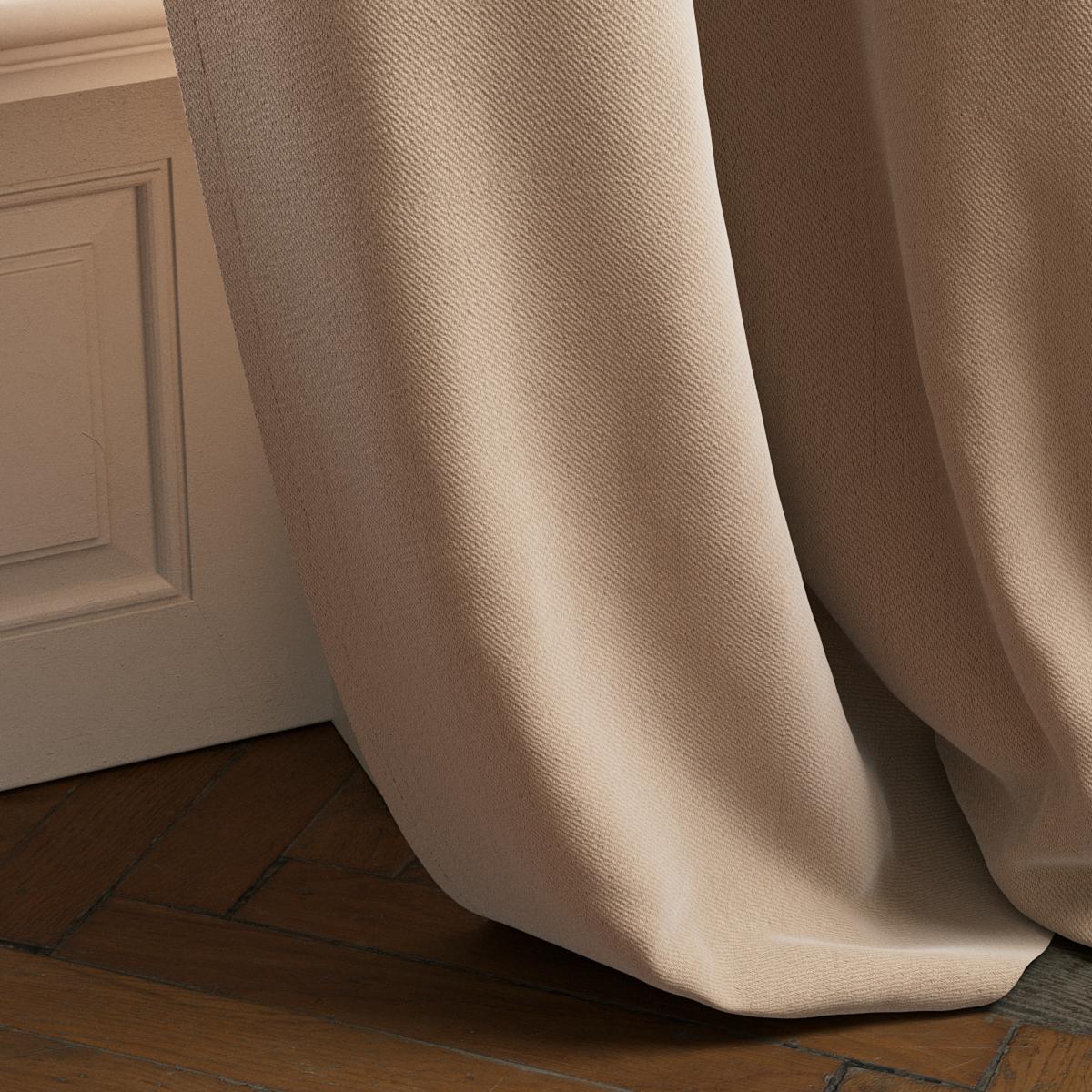 This reversible blackout fabric transforms interiors into calm, restorative retreats. Its surface evokes the elegance of fine wool—soft to the touch, visually understated, yet remarkably effective.