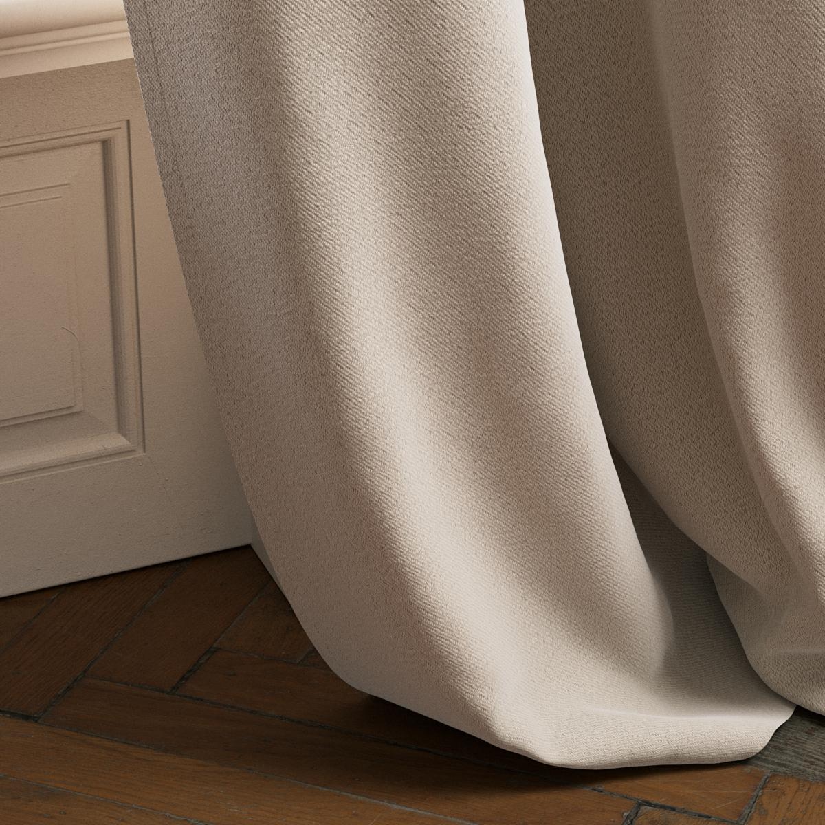 This reversible blackout fabric transforms interiors into calm, restorative retreats. Its surface evokes the elegance of fine wool—soft to the touch, visually understated, yet remarkably effective.