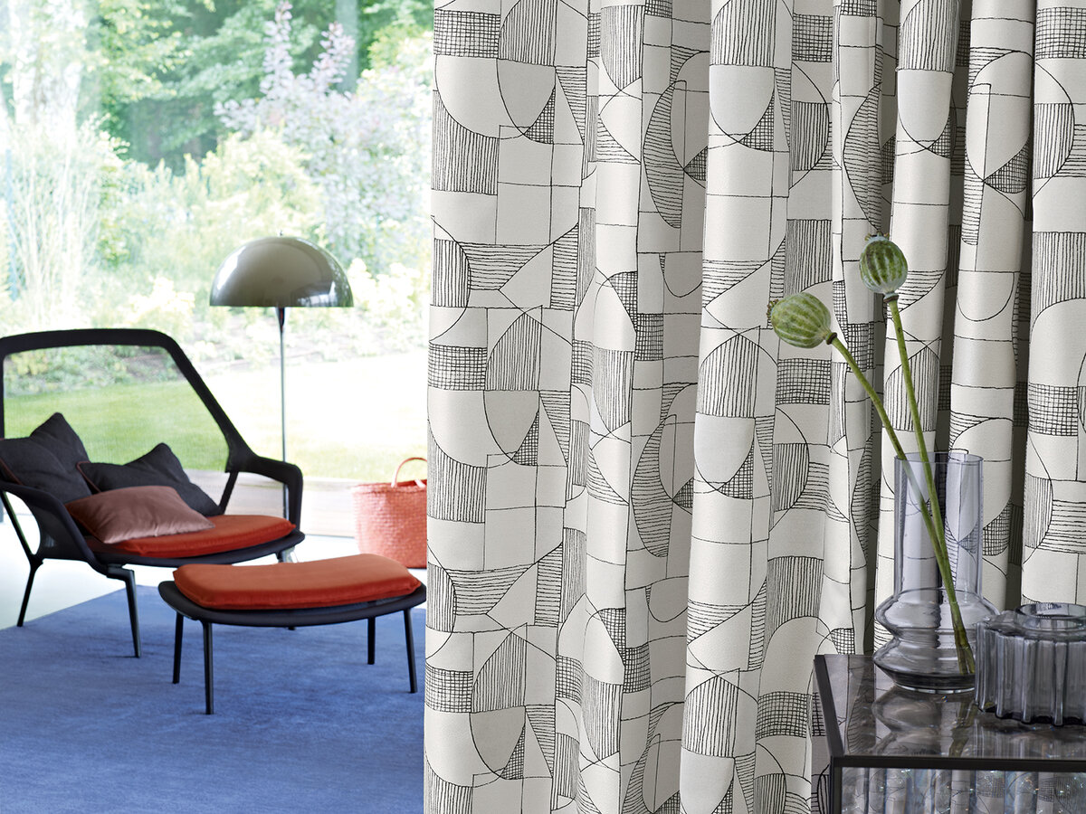 Very fine, almost hand-drawn lines form the modern graphics of the decorative fabric SILHOUETTE. Elegantly shimmering satin surfaces formed by the warp yarns alternate with matte areas, created by the weft yarns. SILHOUETTE is an extravagant highlight both as a decorative fabric for windows and as a light upholstery fabric.