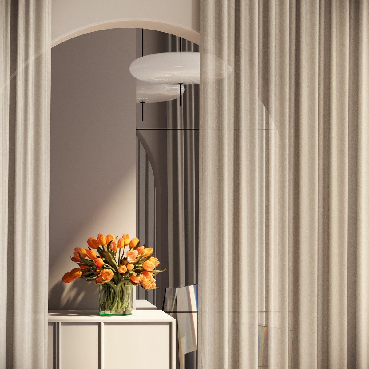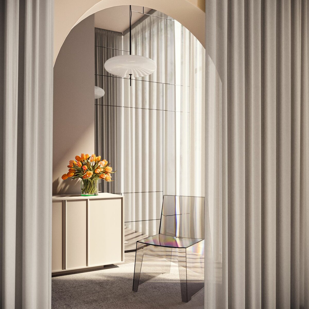 Silky Sorbet, with its transparent, crash-like texture and delicate pastel shades, brings gentle movement and femininity to any room. Made from recycled fibres, it combines sustainability with modern elegance, perfect for relaxed, flowing drapes.