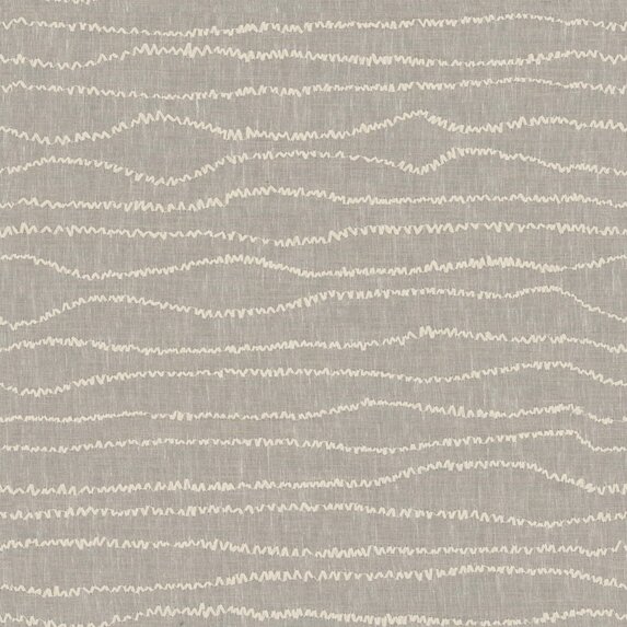 This embroidered sheer fabric captures the charm of effortless ease. Organic lines flow across the airy ground, stitched tone-on-tone in a rhythmic zigzag pattern — sometimes dense, sometimes freely meandering. The result is a lively allover design reminiscent of handcrafted embroidery, giving the textile a charming artisanal touch. A modern classic infused with a sense of lightness and the feeling of a summer breeze within the room.