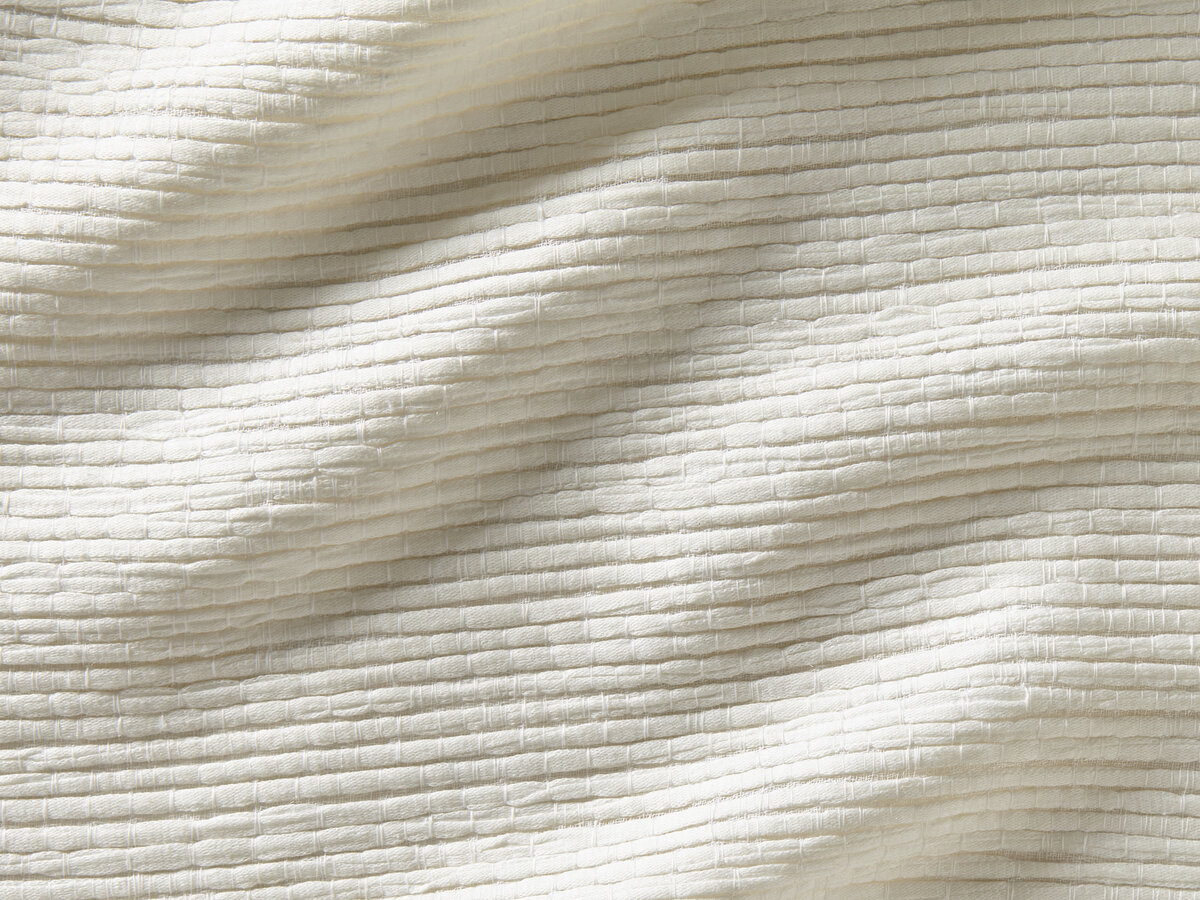 For Sinter, a special jersey yarn has been created whose unusual manufacturing process has resulted in a unique fabric for the true aficionado. A special weaving technique, along with a host of finishing processes, lend the horizontal relief its unmistakable character. Perfect at the window, or as a casual bedspread.