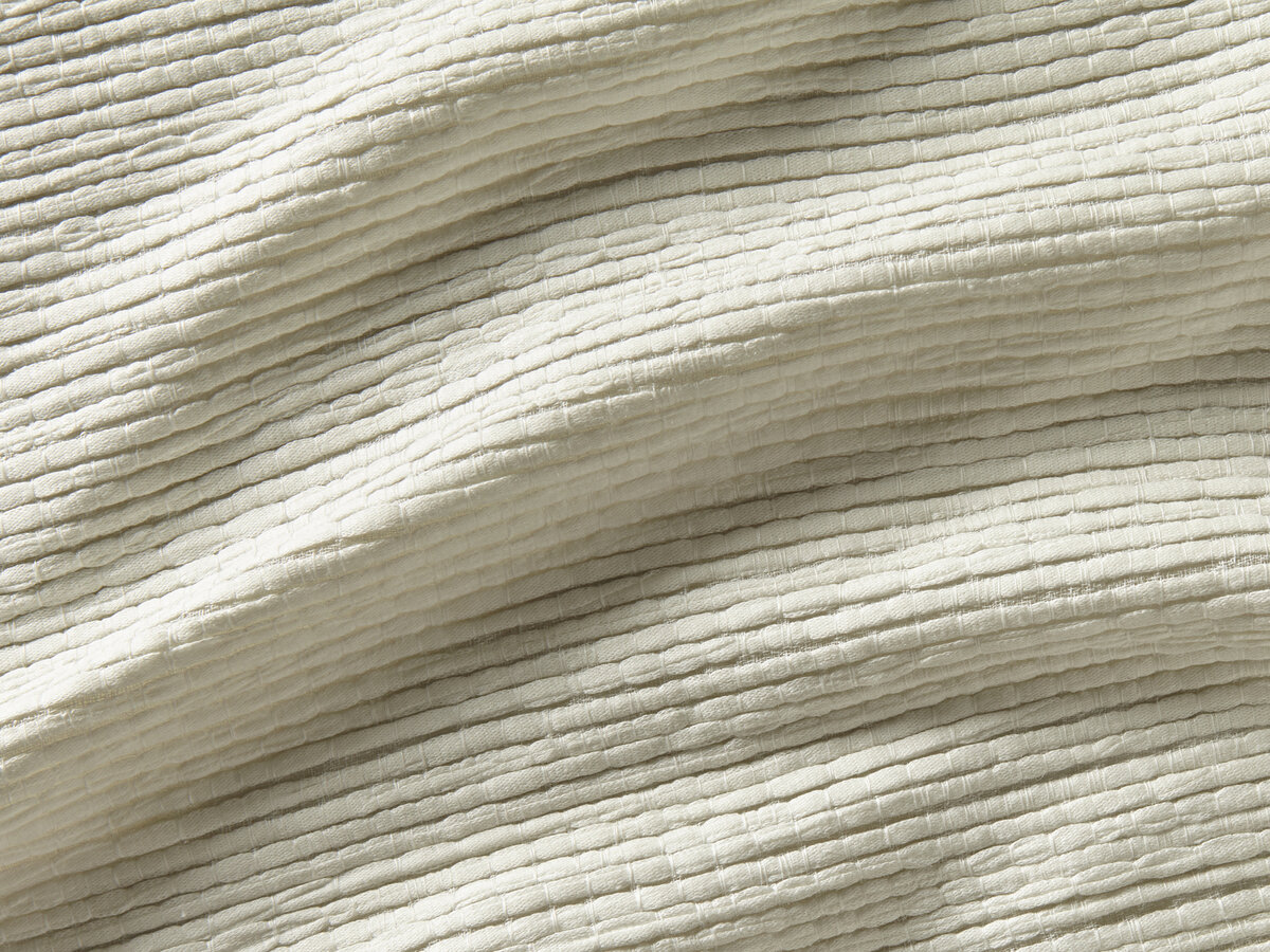 For Sinter, a special jersey yarn has been created whose unusual manufacturing process has resulted in a unique fabric for the true aficionado. A special weaving technique, along with a host of finishing processes, lend the horizontal relief its unmistakable character. Perfect at the window, or as a casual bedspread.