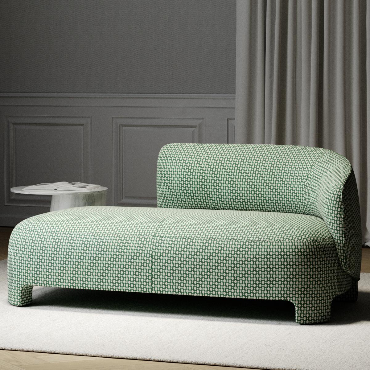 SONGE D’ÉTÉ is woven in Italy and represents the very best of Italian textile savoir-faire. Its cane-weave motif recalls the timeless charm of classic bistro-chair seating.
