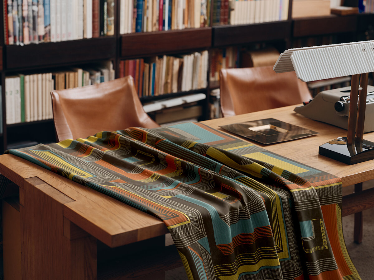 The exquisite craftsmanship of the embroidery, alternating matte and shiny yarn, provides a welcome lightheartedness, contrasting with the stringency of the neoclassical arrangement. It owes its contemporary character on the one hand to the elegant popular design in Greco-Roman architecture of yesteryear, and on the other to the imaginative combination of different embroidery techniques – not forgetting the unusual color scheme. Each of the four signature colorways conjures its very own realm of color – the perfect inspiration for any interior concept.