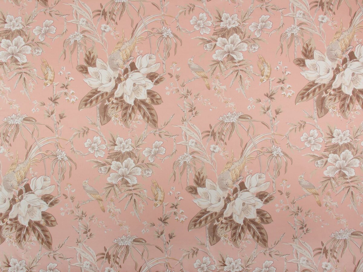Adapted from an antique screen-printed design, St. Croix is a tropical bird and floral print on a beautiful cotton satin ground cloth. Available in four vibrant colourways, St. Croix is a dramatic statement print that can make a room.