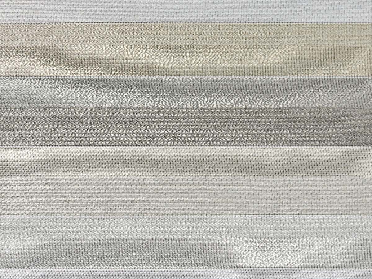 Horizontal block stripes form the basis for this elegant, semi-sheer drapery fabric. The combination of different weave structures establishes an exciting interplay of dense and more transparent surfaces. Finely coordinated color combinations create a gentle gradient in each of the four colorways in order to emphasize the design.