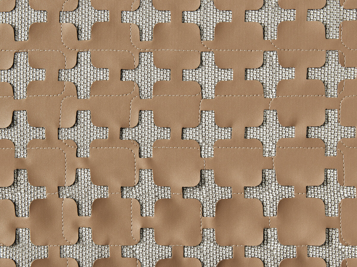 Innovative and expressive, this interpretation of a transparent weave has a pleasant all-over effect. The interplay of the matte background and the appliquéd, geometric faux leather will integrate this attractive fabric seamlessly into any timeless interior design concept. STRUTTURA is an absolute eye catcher!