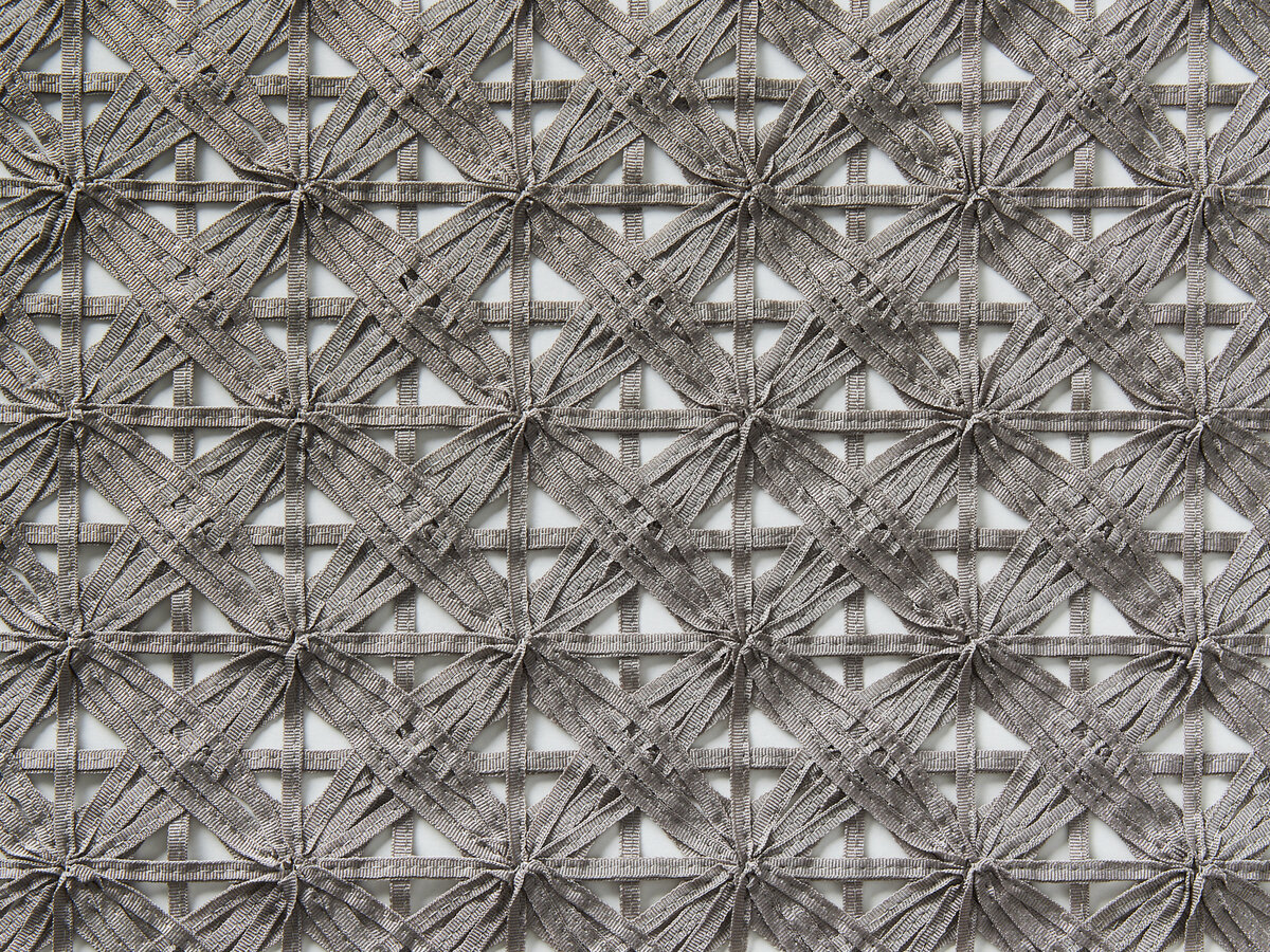 Elegant and very decorative sheer drapery fabric. The innovative interpretation of this all-over design has been achieved by artfully sewn together bands of color, which give this textile its lively, three-dimensional structure. STUCCO adds a stunning accent to any sophisticated interior.