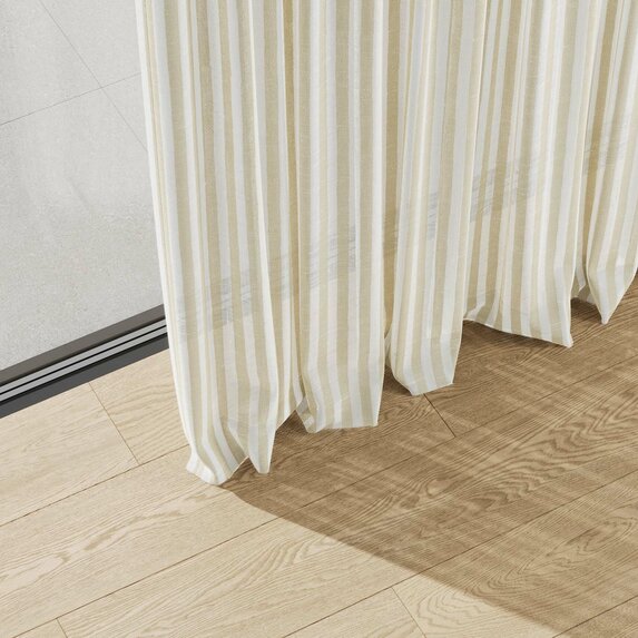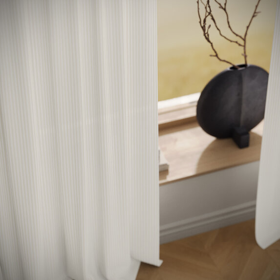 SUMMER STRIPE brings an instant mood lift. The airy stripe feels modern, light and surprisingly versatile, almost like a textured solid. The easy-care technical fiber looks and feels like linen while remaining stable and durable. A broad palette invites endless combinations—summer, distilled into fabric.