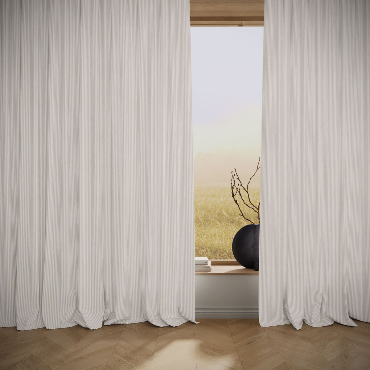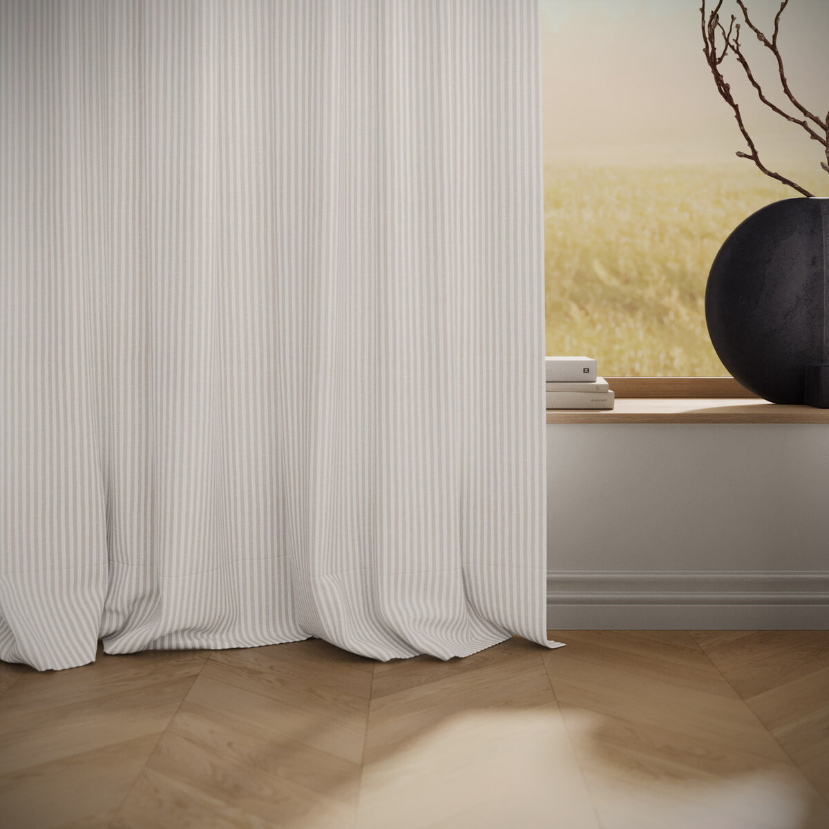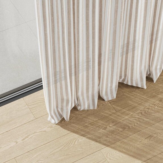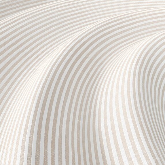 SUMMER STRIPE brings an instant mood lift. The airy stripe feels modern, light and surprisingly versatile, almost like a textured solid. The easy-care technical fiber looks and feels like linen while remaining stable and durable. A broad palette invites endless combinations—summer, distilled into fabric.