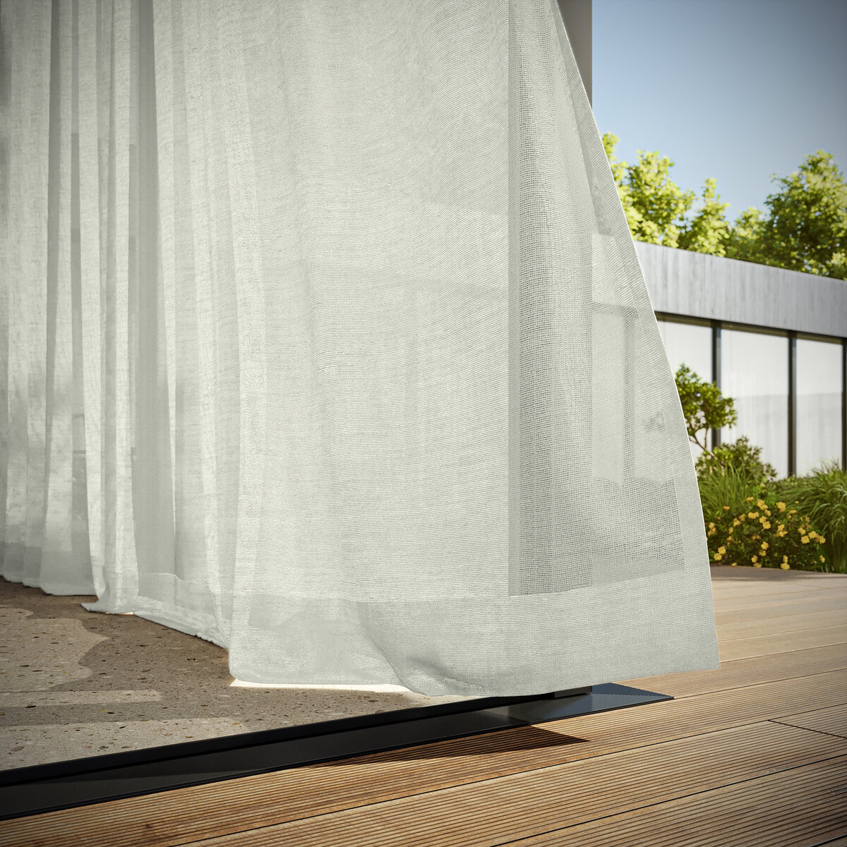 Its special ribbon yarn reflects sunlight, prevents overheating, and reduces glare without darkening the space. Semi-transparent, acoustically effective, and flame-retardant, it combines function with aesthetic appeal.