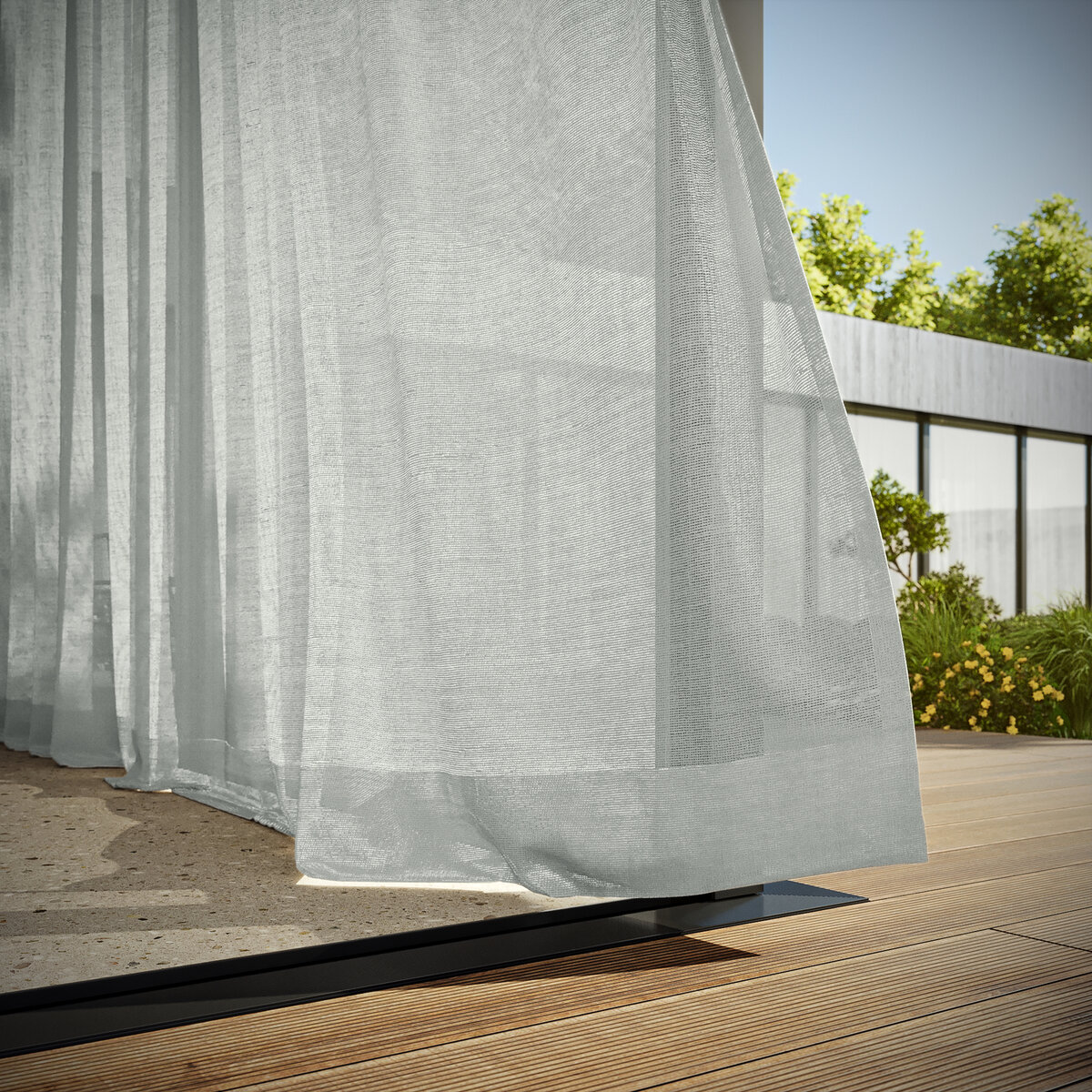 Its special ribbon yarn reflects sunlight, prevents overheating, and reduces glare without darkening the space. Semi-transparent, acoustically effective, and flame-retardant, it combines function with aesthetic appeal.