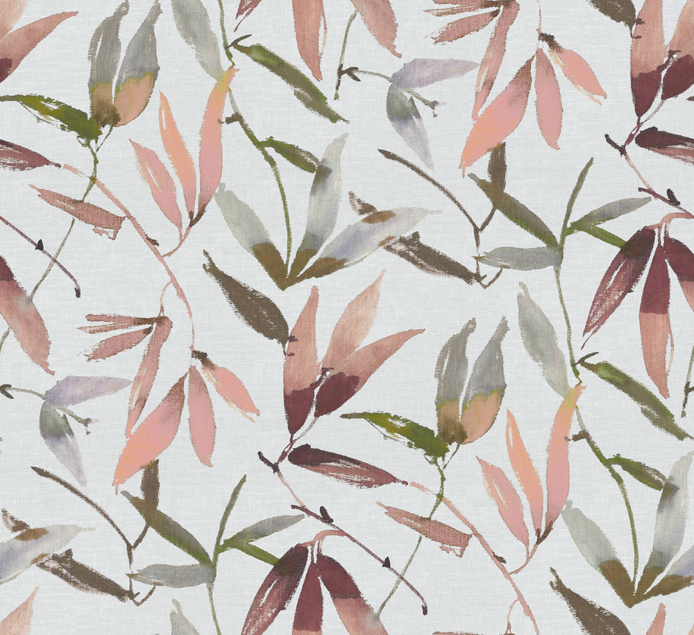 These leaves appear to dance – watercolor foliage gently floats across the fabric like a summer breeze. In fresh spring greens, bright summer yellows, and warm autumnal reds, they reflect the changing rhythm of the seasons.