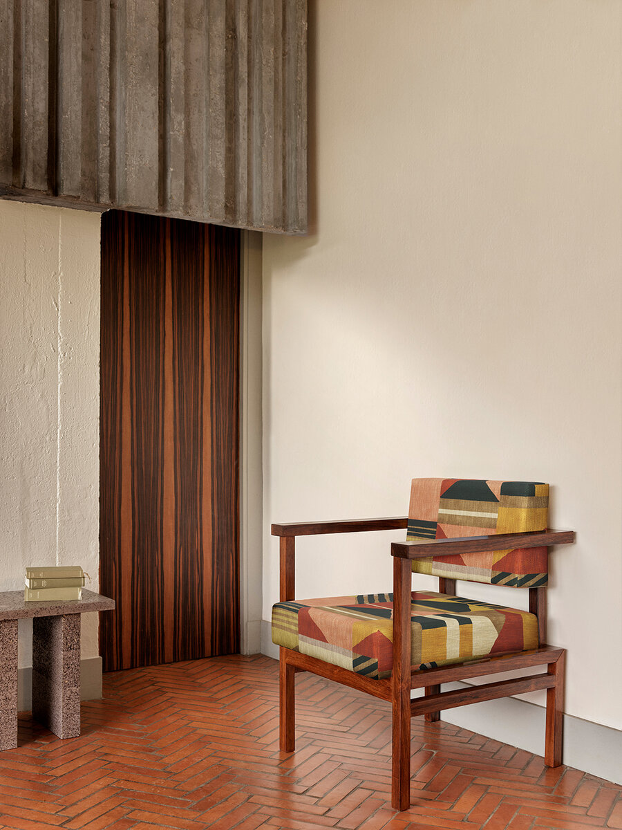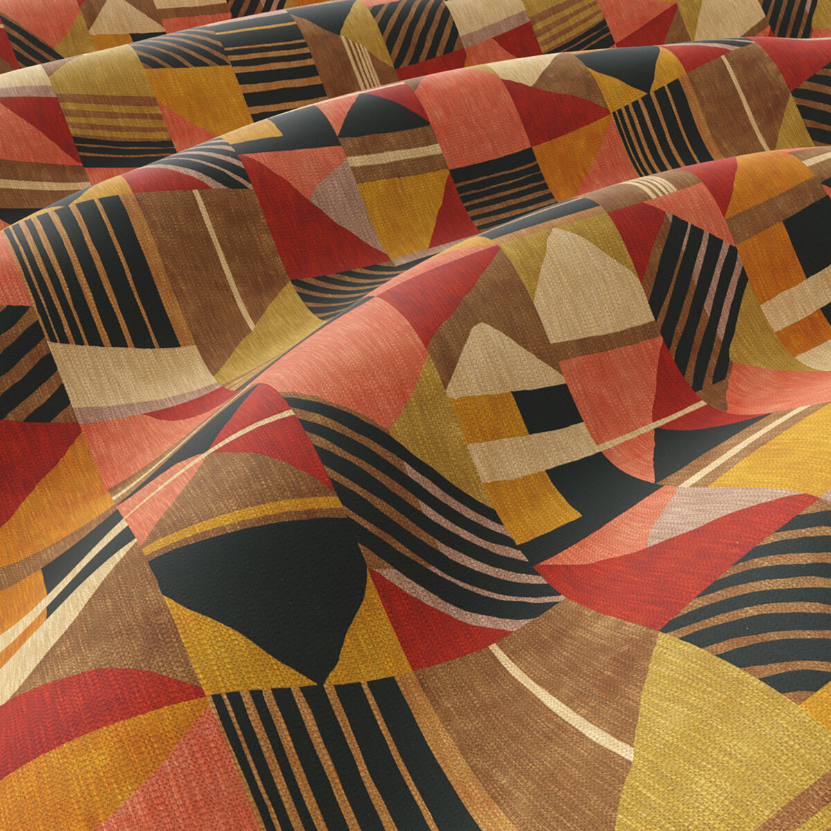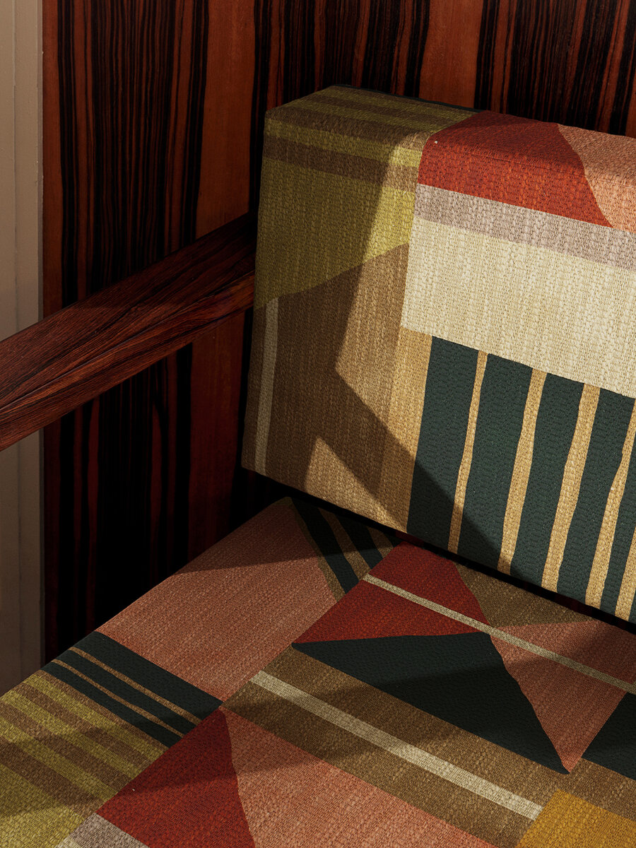 This abstract upholstery fabric is inspired by the sublime simplicity of line and colour, the design language of modernism.