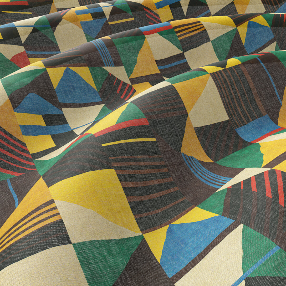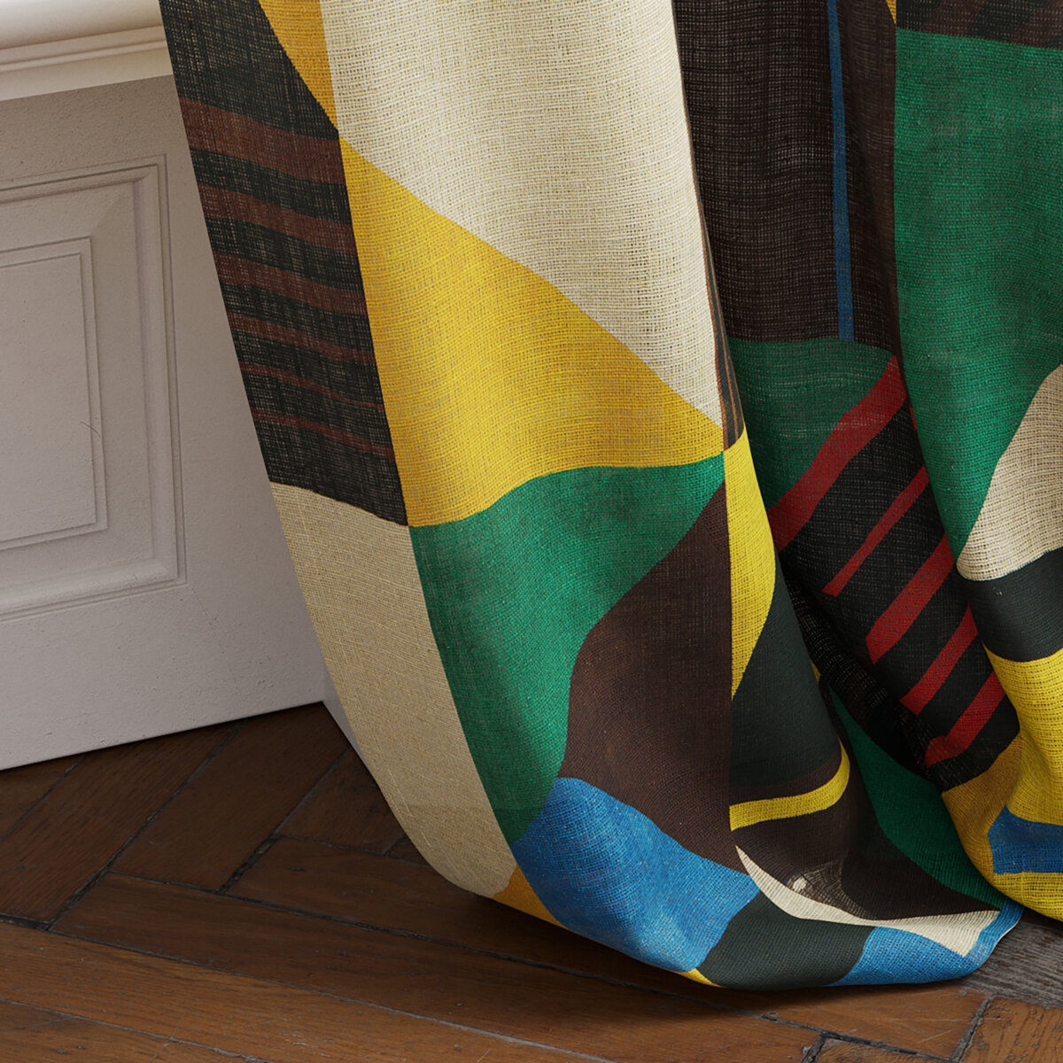 TANGARA whisks us away into a colorful world of abstraction. The modernist print design on an airy linen base fabric presents fresh, vibrant and earthy colorways. The playful geometric design combines a dynamic composition that radiates energy and freshness.