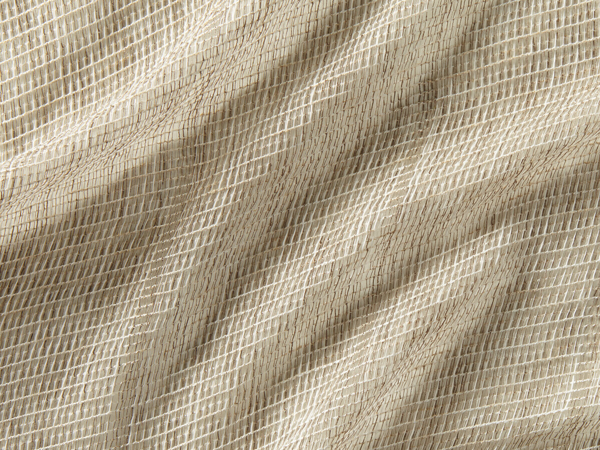 This double weave boasts a captivating feel and drape. The rhythm of the two-ply gridlike pattern is relieved at regular intervals by a subtle stripe effect.