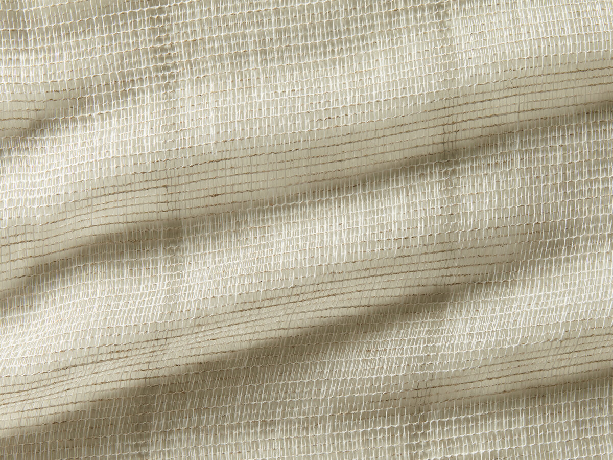 This double weave boasts a captivating feel and drape. The rhythm of the two-ply gridlike pattern is relieved at regular intervals by a subtle stripe effect.