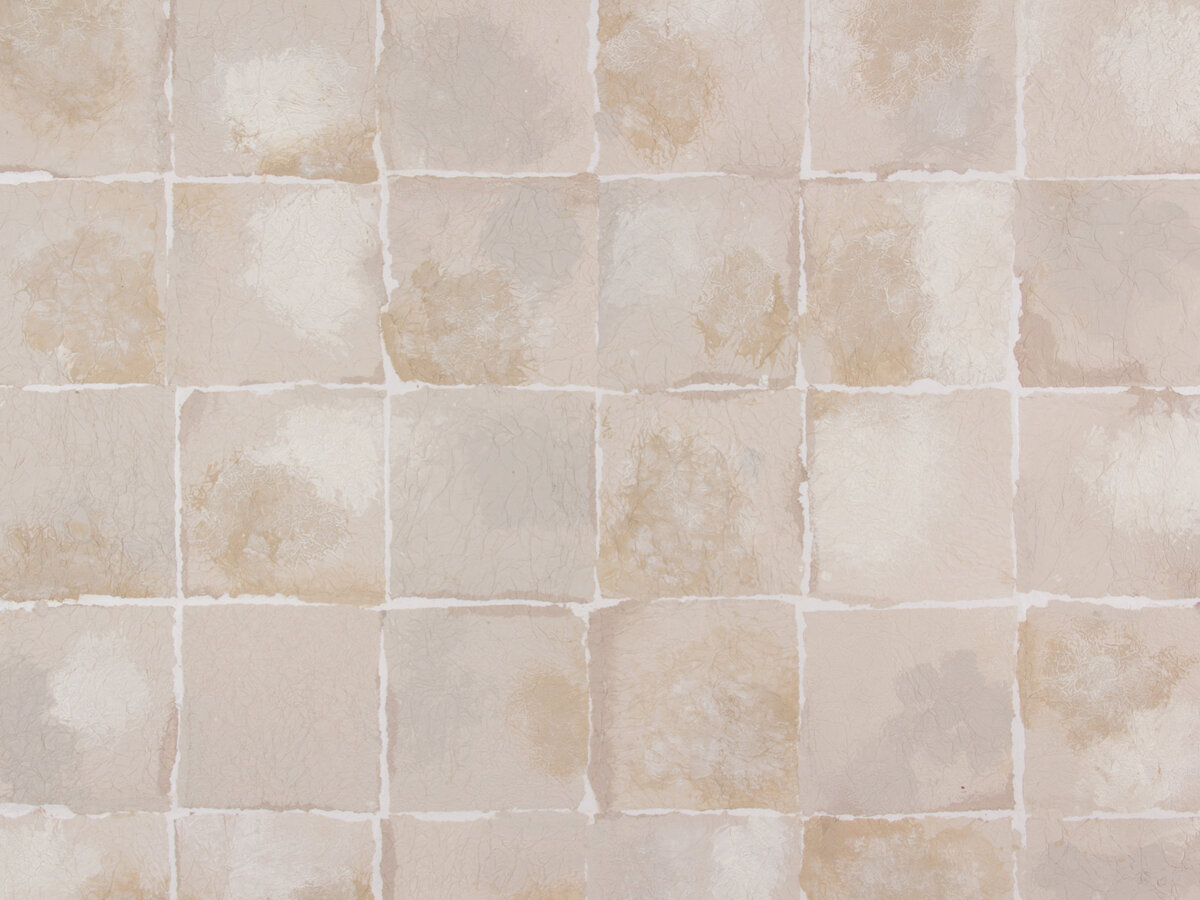 The Tiles wall covering is meticulously handcrafted and boasts a special, sophisticated look with an illusion of depth. Up to six processing steps are required to make this work of art. Paper is hand-painted, crashed, cut and applied to the prepared background precisely by hand. While each unit of this special wallpaper is one of a kind, a number of units can be combined to create an impressive cohesive look on your wall.