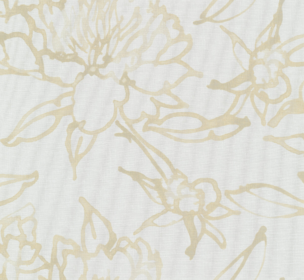 A batik flower that has its finger on the pulse of fashion. The fine, handcrafted structure of TINT’s transparent base fabric provides an excellent backdrop for the artistic batik print. The watercolour design on the calm background brings out the best in the batik colours – blue, green, grey and beige – and puts a smile on the face of anyone who sees it.