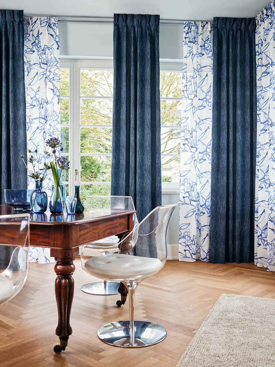 A batik flower that has its finger on the pulse of fashion. The fine, handcrafted structure of TINT’s transparent base fabric provides an excellent backdrop for the artistic batik print. The watercolour design on the calm background brings out the best in the batik colours – blue, green, grey and beige – and puts a smile on the face of anyone who sees it.