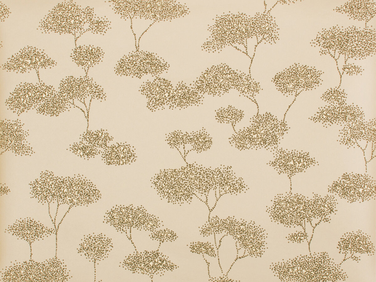 Tree grows as a stylistic natural motif and is artistically spread across the fabric on a subtly shimmering back- ground.Metallic pigments create fine accents, support the dispersed patterns and achieve a particular in-depth effect.