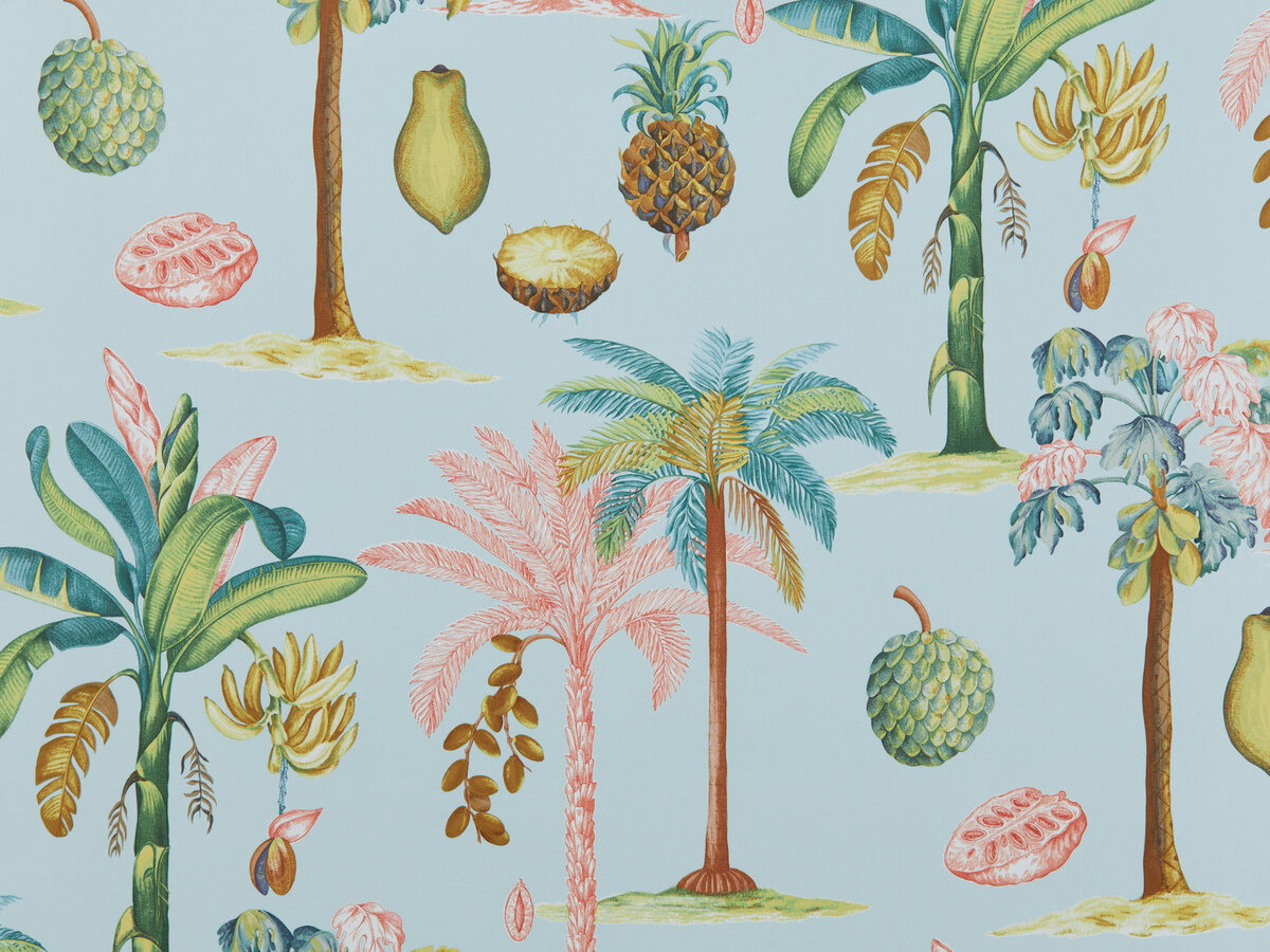 The hero of the collection is TROPICA, a bestselling Travers print first launched in 1997 and for which the collection is named after. It is composed of uniquely scaled tropical fruit and trees, originally hand painted with ink and tempera watercolor techniques. TROPICA has been revived from our archives on a lightweight cotton ground, in a fresh color palette, finished with a light chintz.