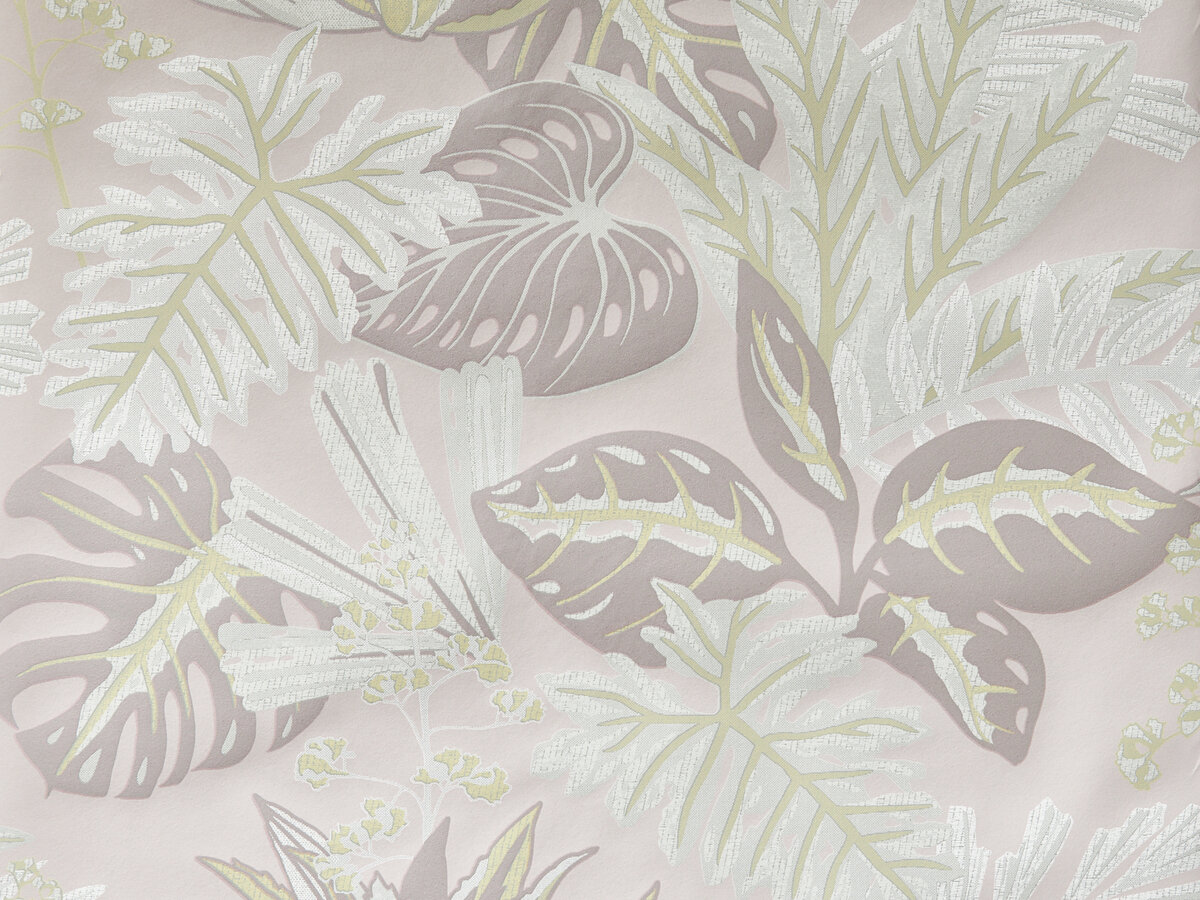 With TROPICAL WALL, the name says it all. A rich tapestry of agave, monstera, and fern leaves are seen across the entire surface, drawing your gaze into an exotic world. TROPICAL WALL has delicate, subtle structures on the surface of the material which, in combination with its soft, abstract tones, lend it its modern look. Produced as a two-dimensional rotary print with gentle accents and contrasts, this design skilfully blends into the room as an emotional highlight.