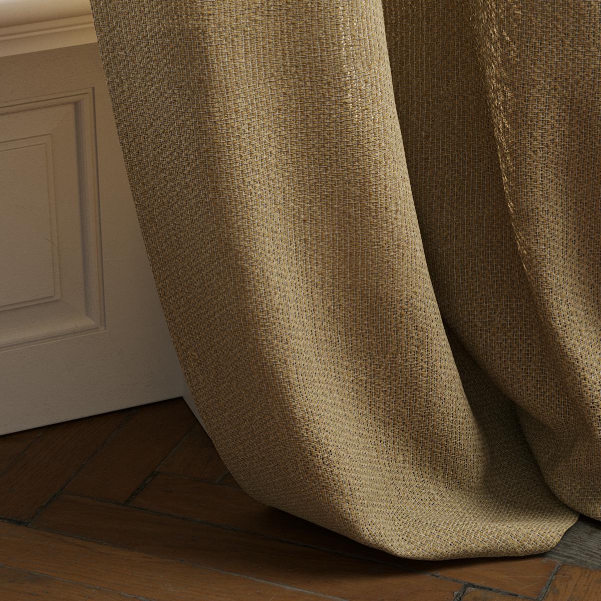 Yarns of varying thickness create a unique surface within the open weave, adding natural depth and understated textile charm. Available in eleven harmonious colorways, this floor-length decorative fabric brings softness and movement to interiors—featuring subtle pastel mélanges in both warm and cool tones.
