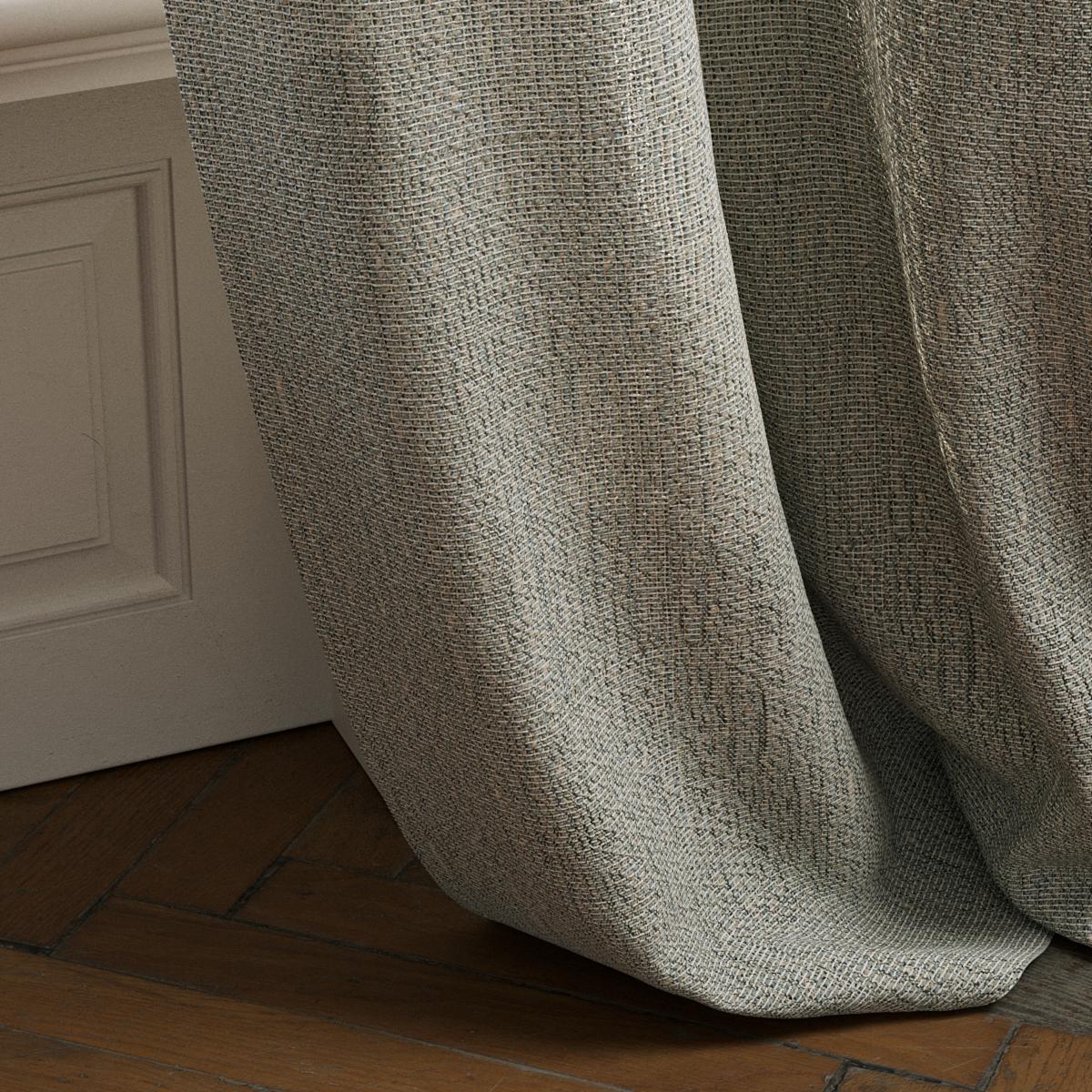 Yarns of varying thickness create a unique surface within the open weave, adding natural depth and understated textile charm. Available in eleven harmonious colorways, this floor-length decorative fabric brings softness and movement to interiors—featuring subtle pastel mélanges in both warm and cool tones.