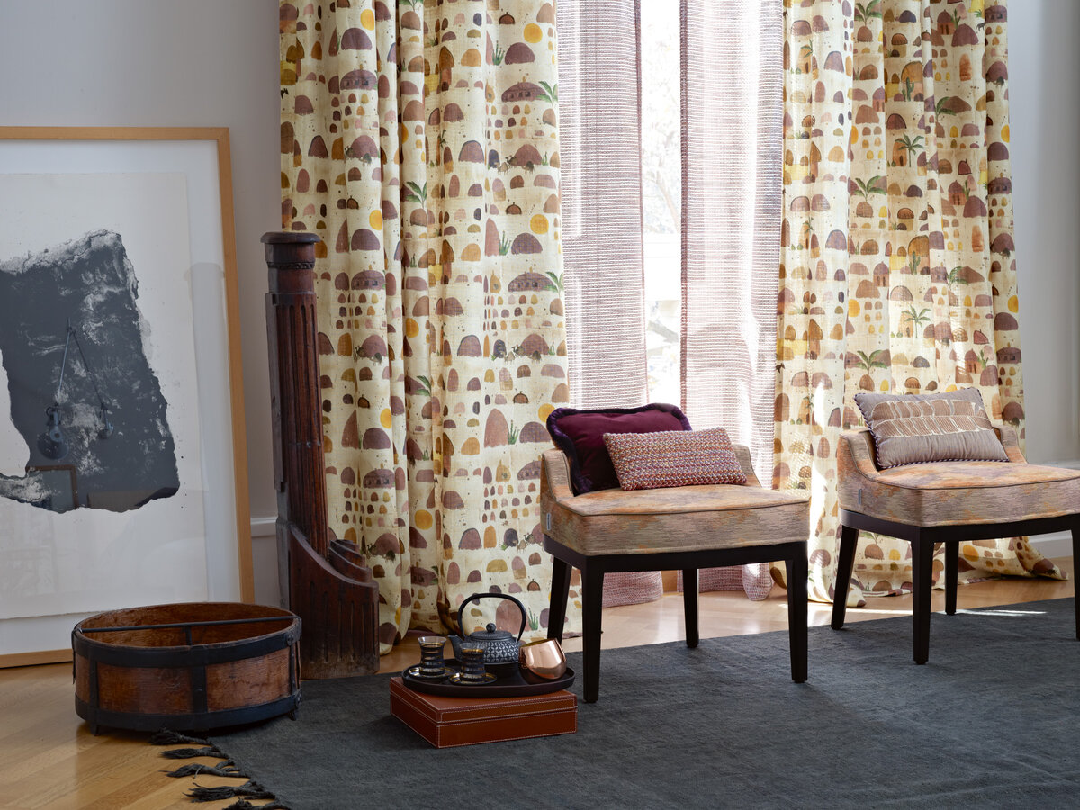 This upholstery fabric gets its vibrancy from its silhouettes. The chenille thread used further enhances its vivacity. A strong design, of which the proportions are ideal for both small furniture and large seating. It is available in five different colours that complement the collection.