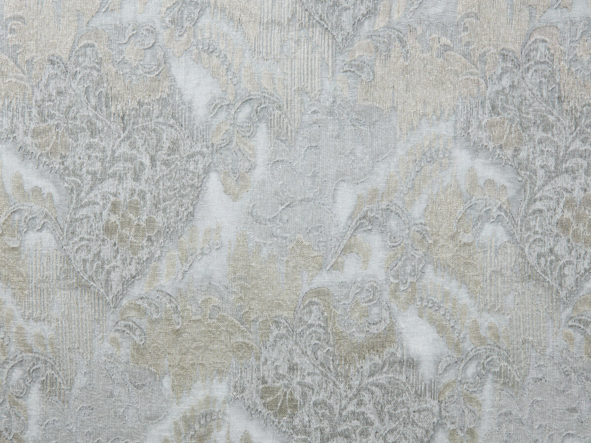 A prestigious, floor-to-ceiling transparent fabric with a laid-back sophisticated look. The contemporary interpretation of this elegant, ornamental design was realized in an intricate fil coupé weave carried out in an Italian manufactory for luxury items.