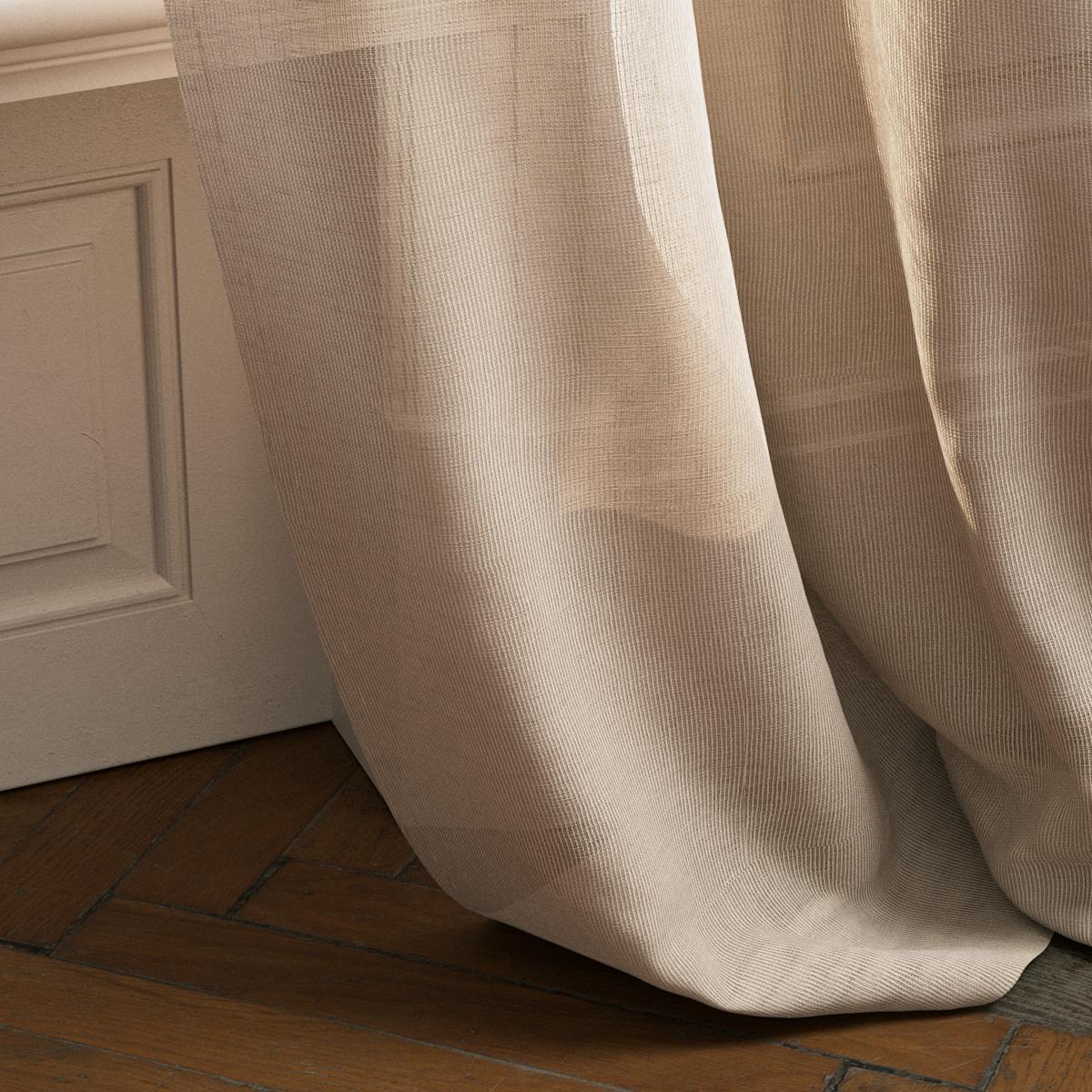 This semi-transparent decorative fabric infuses interiors with effortless natural charm. Its finely textured surface is created by the interplay of double-twisted cotton and fine linen, producing a subtle fil-à-fil effect that adds gentle movement and depth.