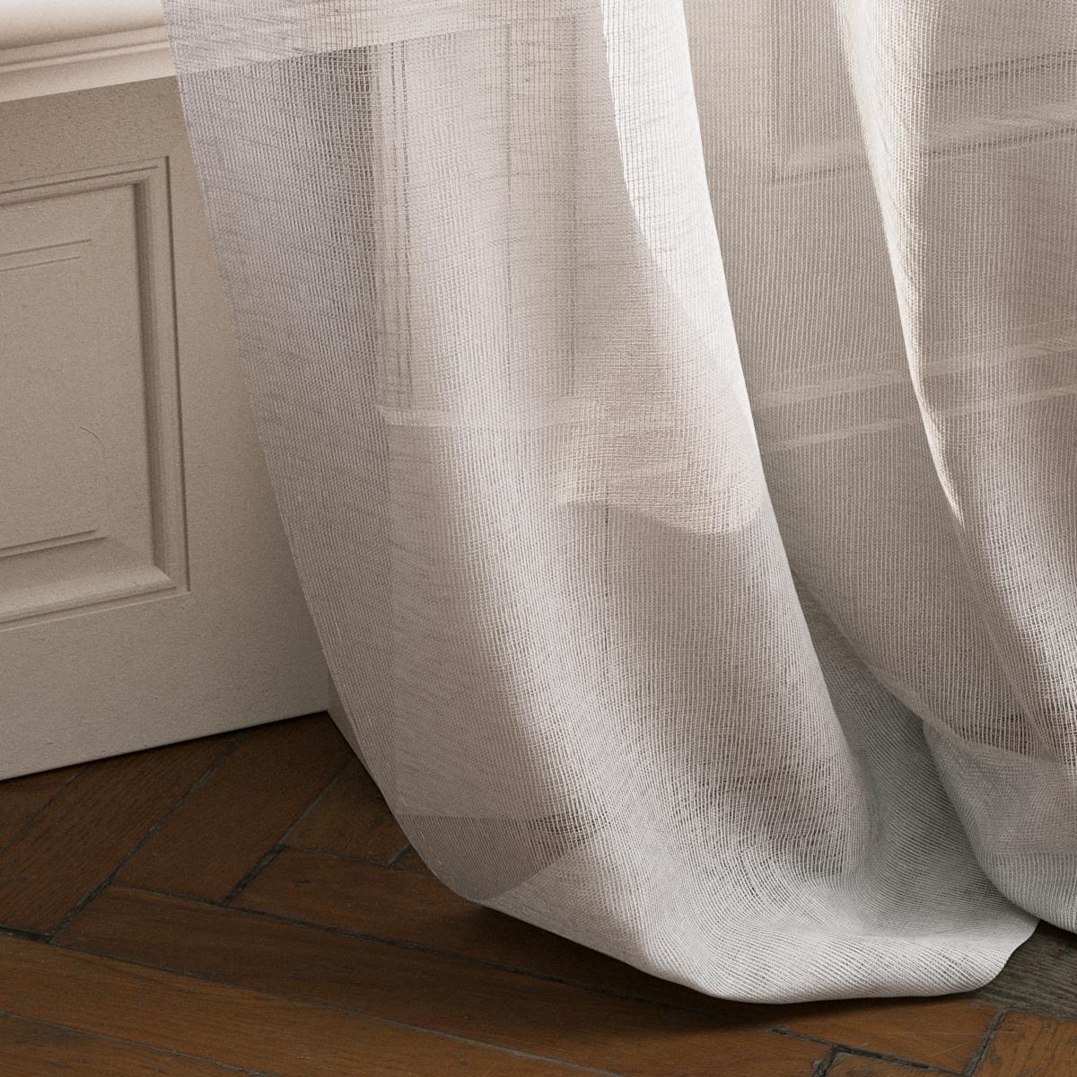 This semi-transparent decorative fabric infuses interiors with effortless natural charm. Its finely textured surface is created by the interplay of double-twisted cotton and fine linen, producing a subtle fil-à-fil effect that adds gentle movement and depth.