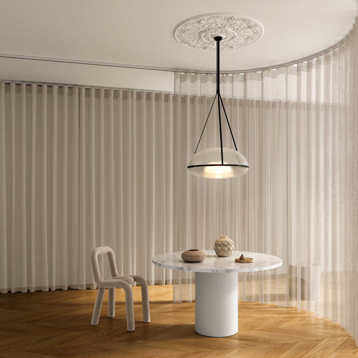 VITRUV is architecture in fabric. Clear in form, function, and focus, its architectural look in a choice of 10 trendy colors will make a statement in any interior, whether at home, in the office or in a hotel. Outstanding: VITRUV can also be transformed into an iconic room divider in multiple layers and colors. In this context, the transparent, flame-retardant mesh fabric made from recycled polyester showcases its functional aesthetic. Why not try this fabric in your own home?