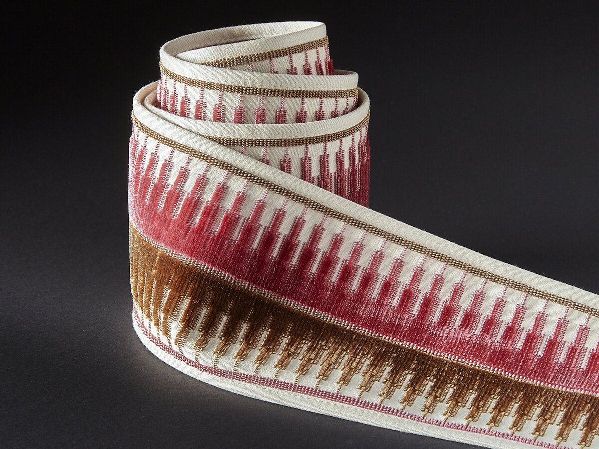 The plush richness of this two tone cut velvet tape is named for Wall Street in Lower Manhattan, one of the most famous streets in the world. Using a luxurious viscose pile on a 100% cotton ground, WALL STREET is offered in 6 gorgeous colour combinations.