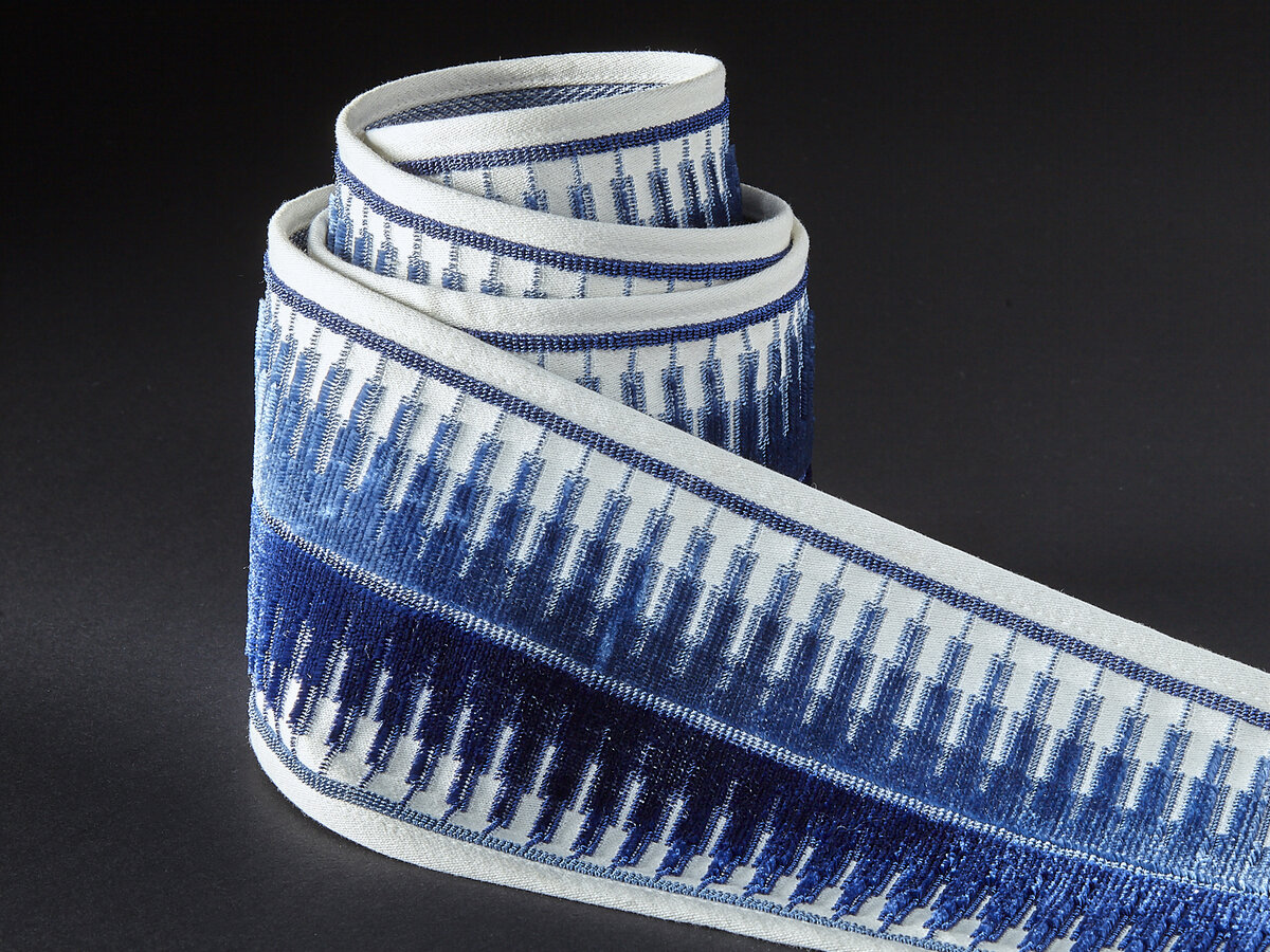 The plush richness of this two tone cut velvet tape is named for Wall Street in Lower Manhattan, one of the most famous streets in the world. Using a luxurious viscose pile on a 100% cotton ground, WALL STREET is offered in 6 gorgeous colour combinations.
