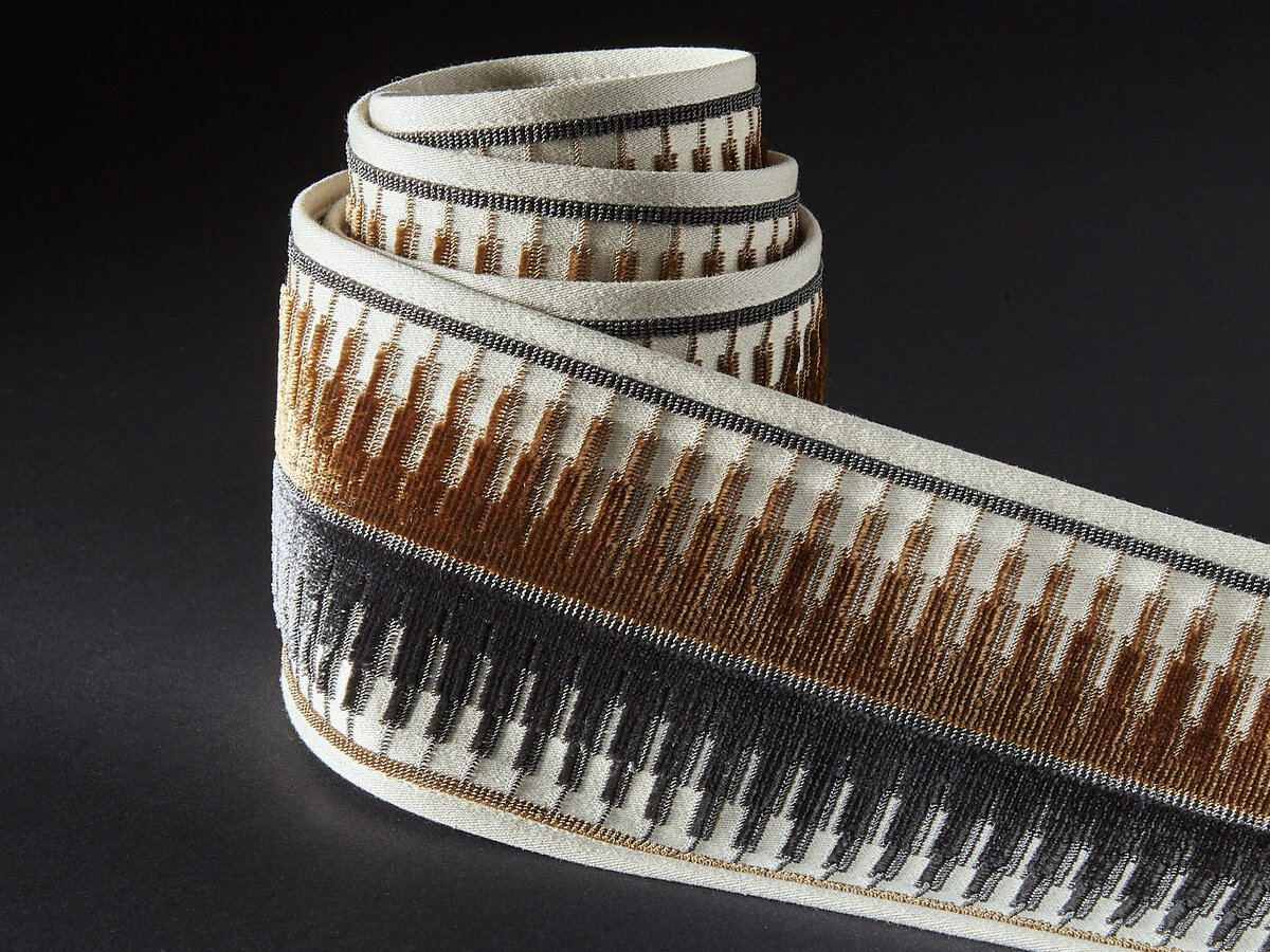 The plush richness of this two tone cut velvet tape is named for Wall Street in Lower Manhattan, one of the most famous streets in the world. Using a luxurious viscose pile on a 100% cotton ground, WALL STREET is offered in 6 gorgeous colour combinations.