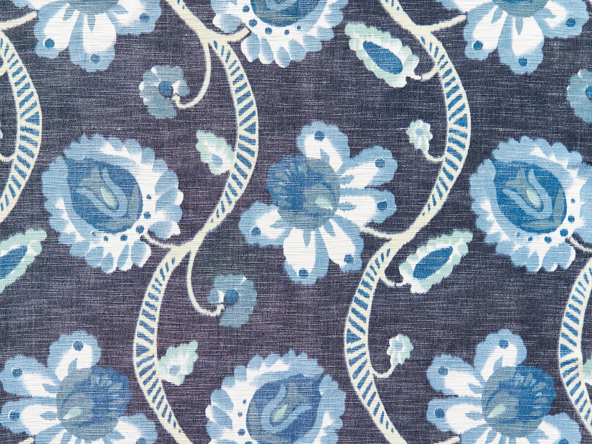 Our new print, WAVE HILL, evokes the feeling of vintage charm. The design itself was inspired by vines and trails from the Ottoman era, modernized with the use of large bold flowers and then softened using a traditional warp print technique. The design is first screen printed by eight trained artisans on to a net fabric, which is loose and open. The prepared warp beam is then carefully attached to a hand loom where a skilled artisan weaver hand ties the ends. Subtle variations are a part of the inherent beauty of this charming rustic print.