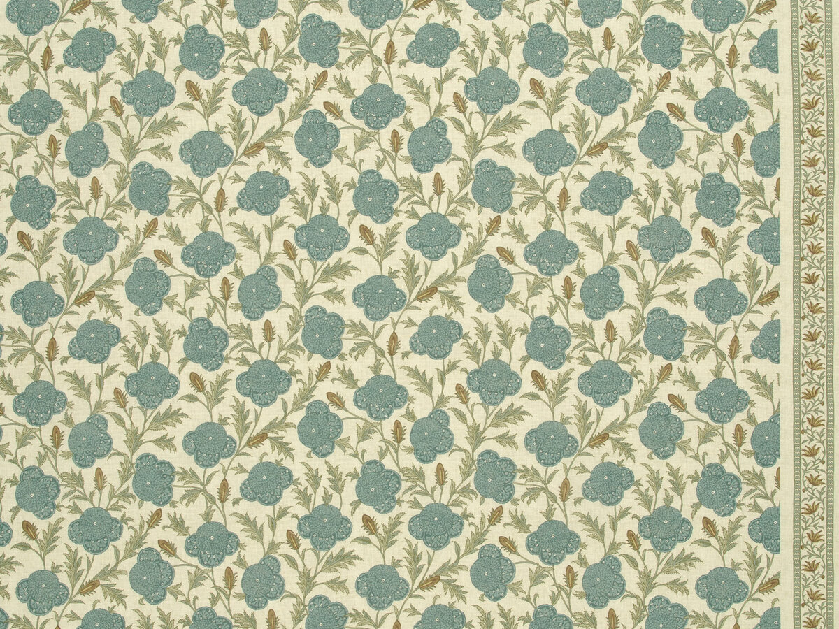 This pleasing indian floral vine print is enhanced by a boarder engineered to be removed and reapplied as a decorative finish according to the designer's discretion. Printed on a cotton/linen ground, WINTON FLORAL has the distressed look and character of the original print document.