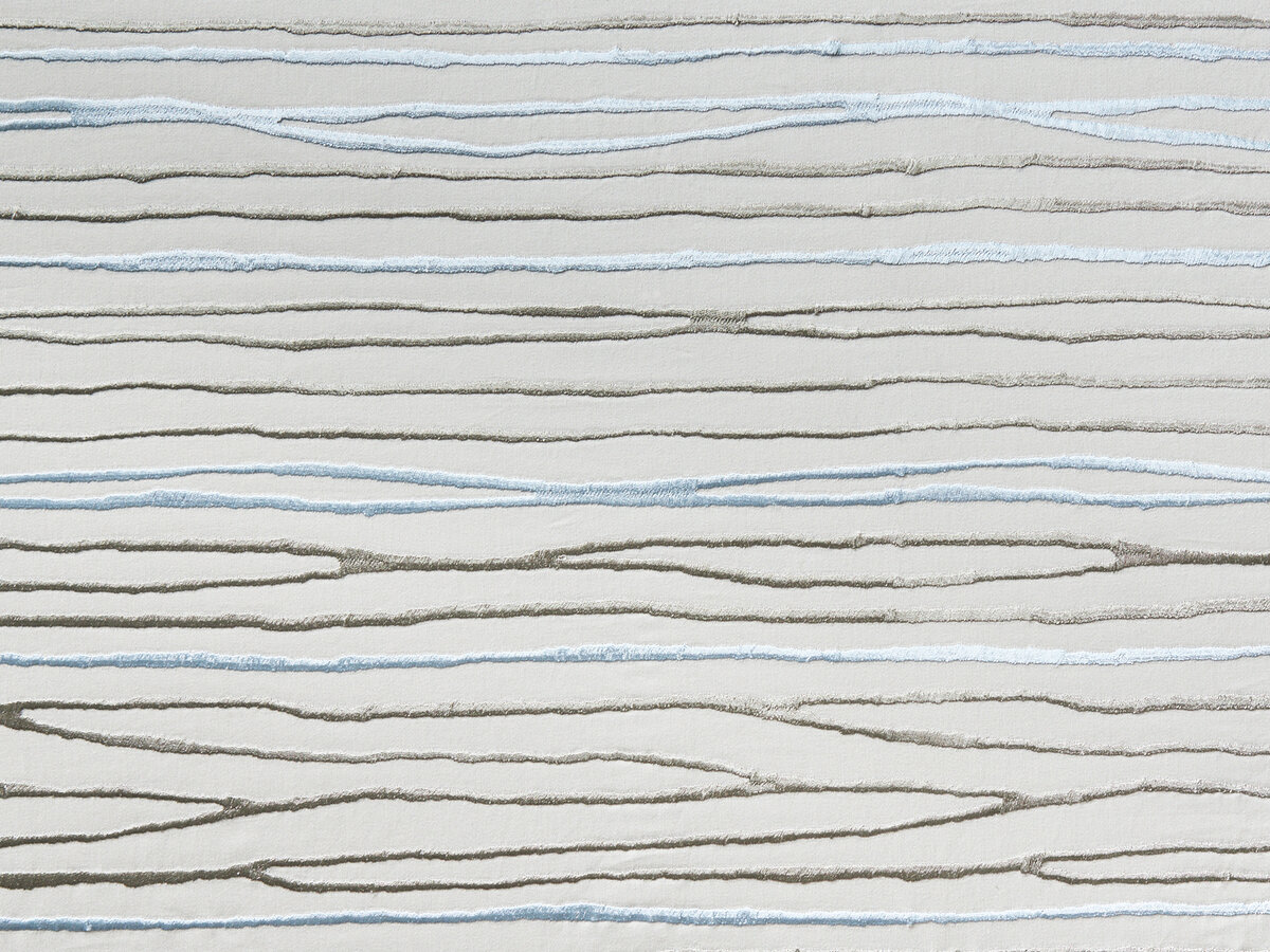 This elegant horizontal embroidery is the modern take on the woodgrain effect. Two embroidery colours interplay with the base colour of the elegant cotton satin. Draped in lavish waves, the horizontal pattern really comes into its own.